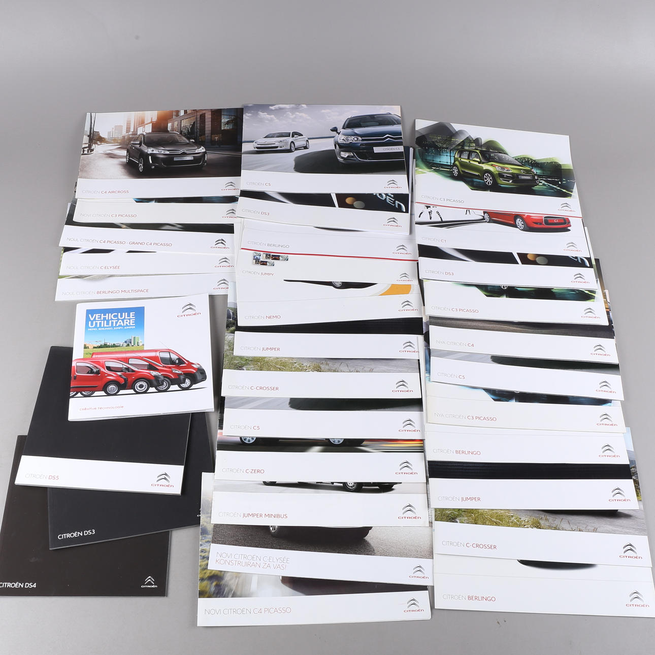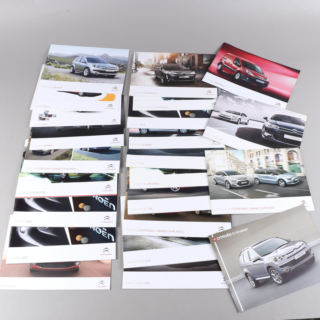 Un Lote de folletos de coches/carpetas de coches/anuncios de la marca de coches Citroën.