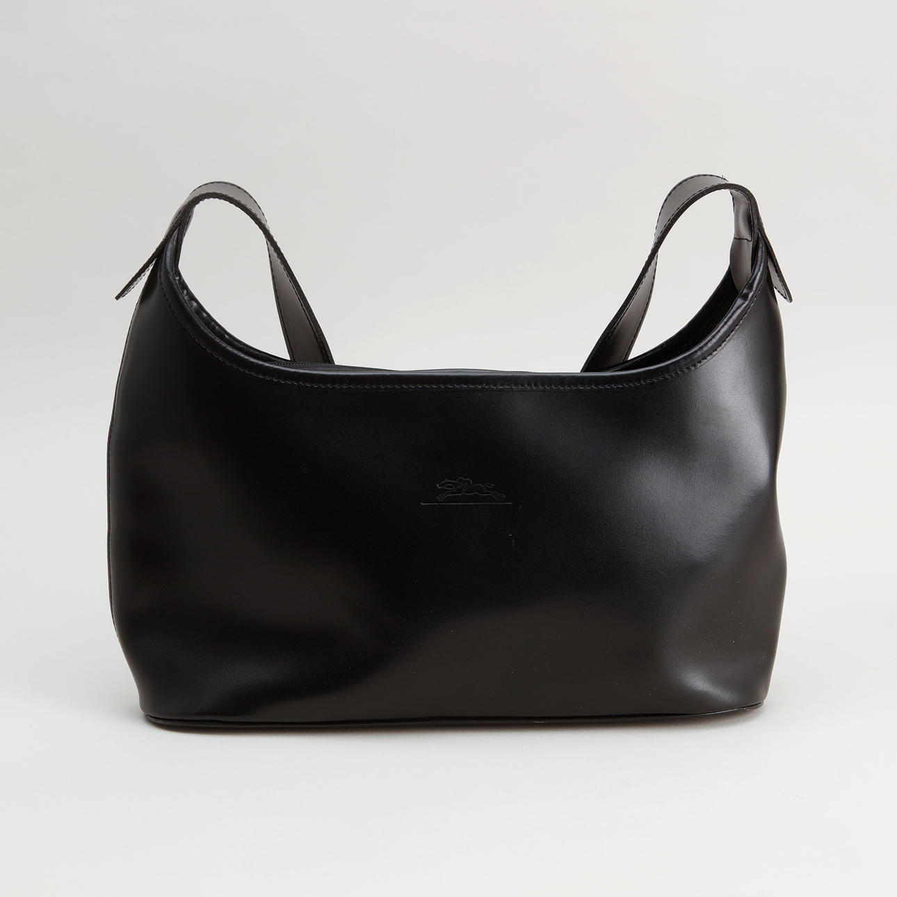 Bolso en cuero negro. 1 compartimento interior. 35 x 17 x 8 cm.