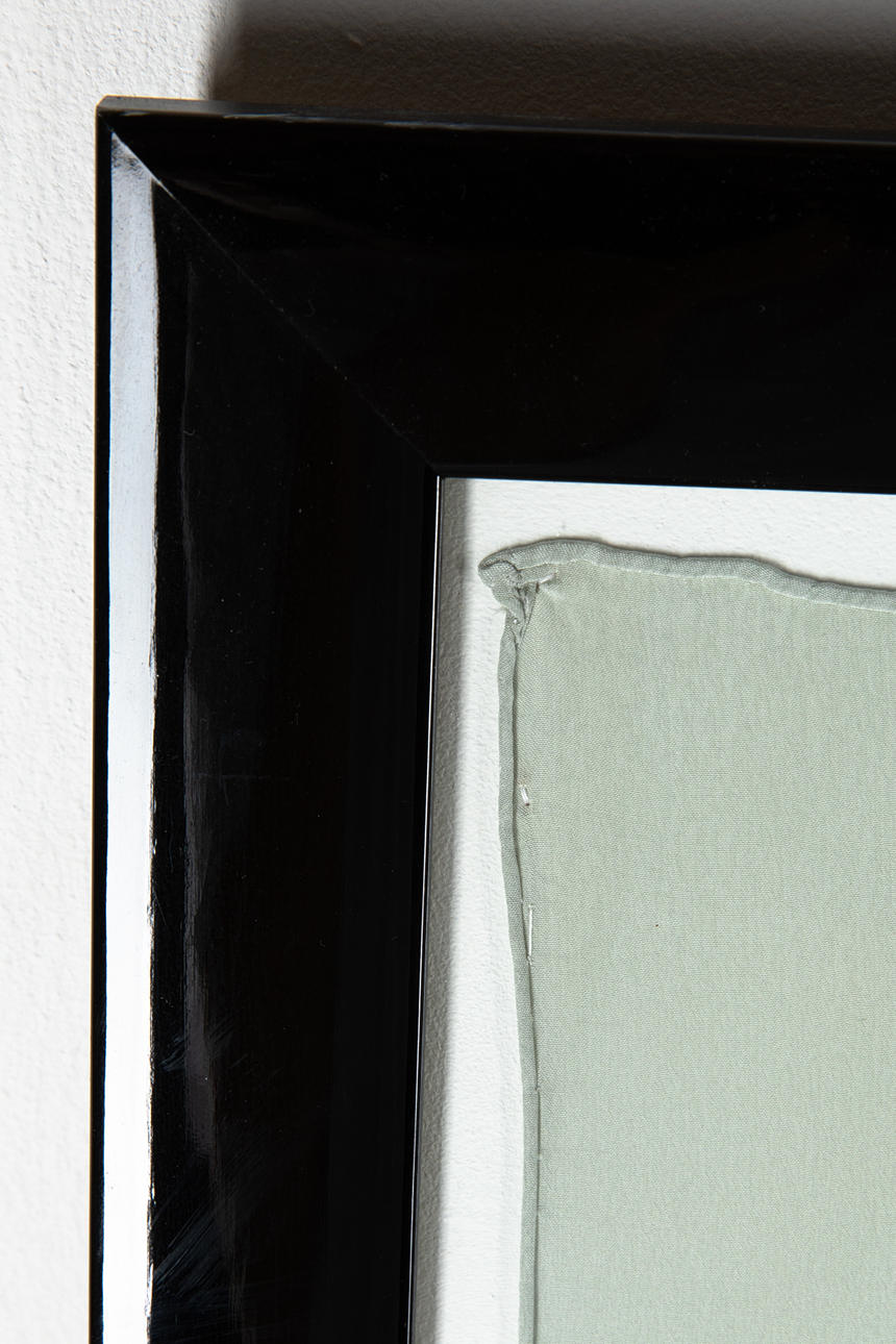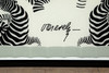 cebras Pañuelo de seda bicolor blanco/menta, estampado negro. Montado en cartón ligero. 135x138 Firmado en letra de imprenta: Vasarely. Enmarcado tras un cristal.