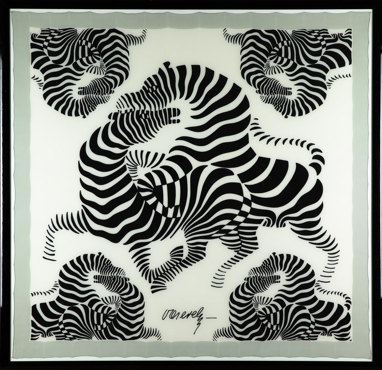 2372262. VICTOR VASARELY. cebras bufanda de seda enmarcado (61-2).