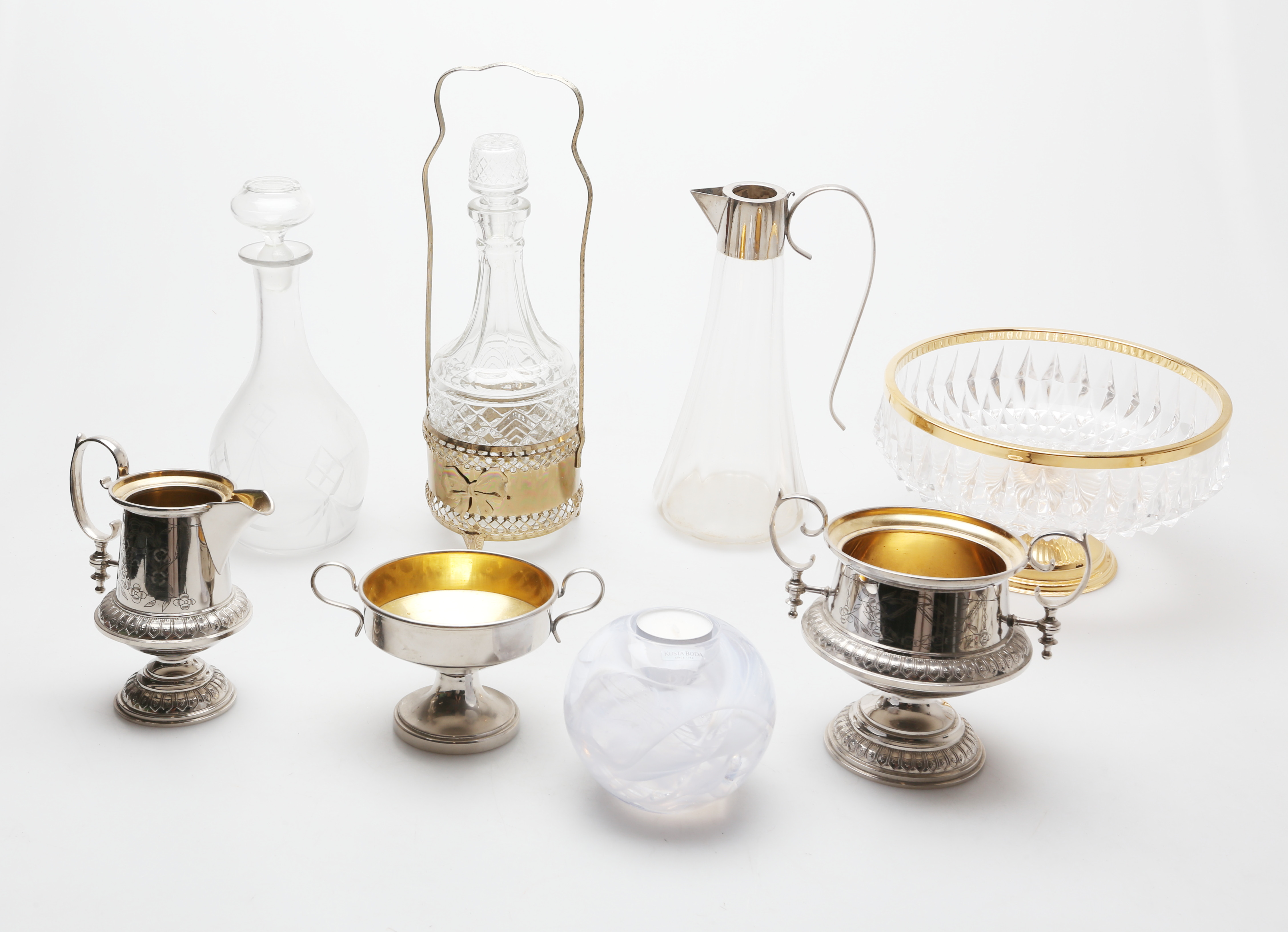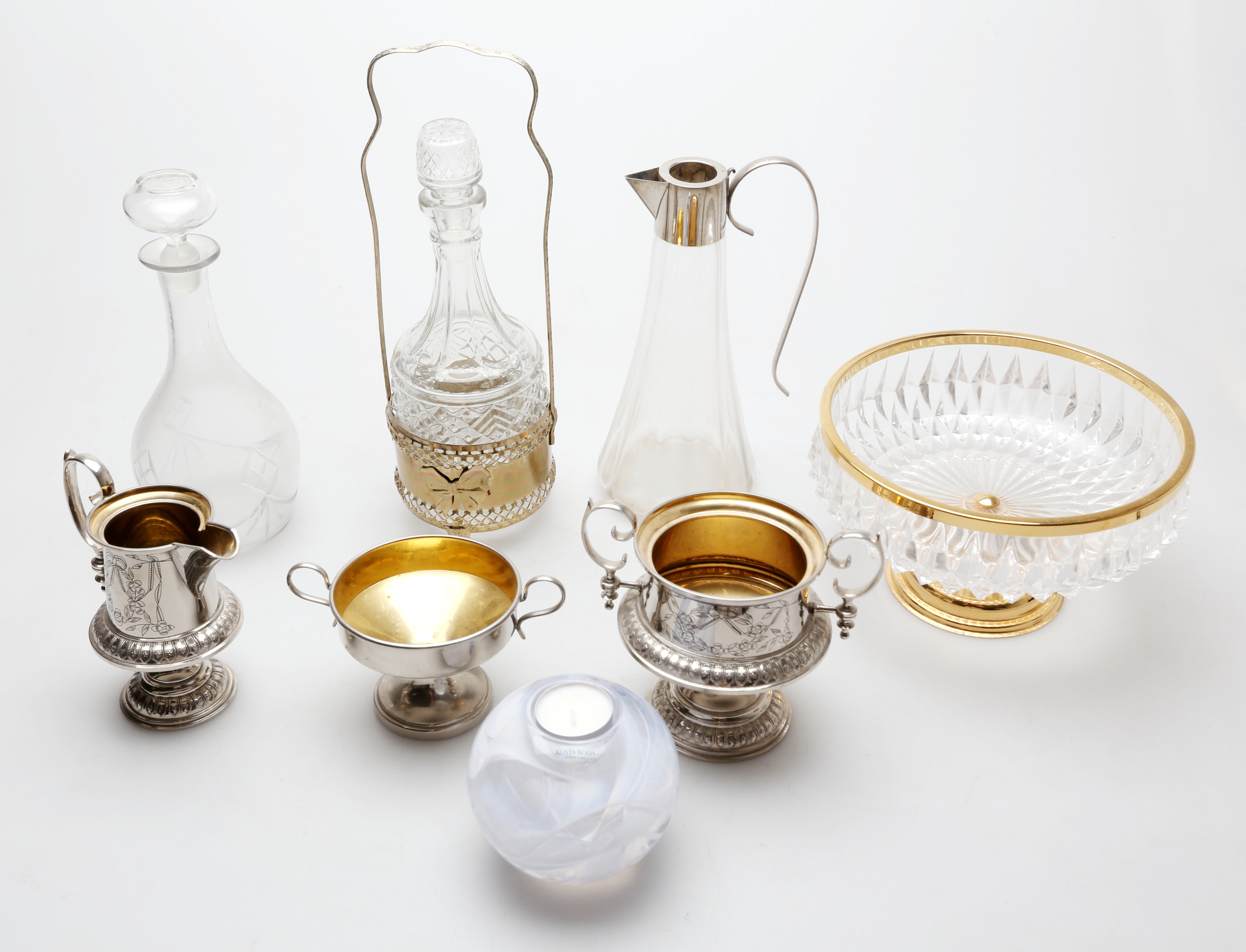 2373091. OBJETOS DE VIDRIO Y METAL, 8 piezas, década de 1900.