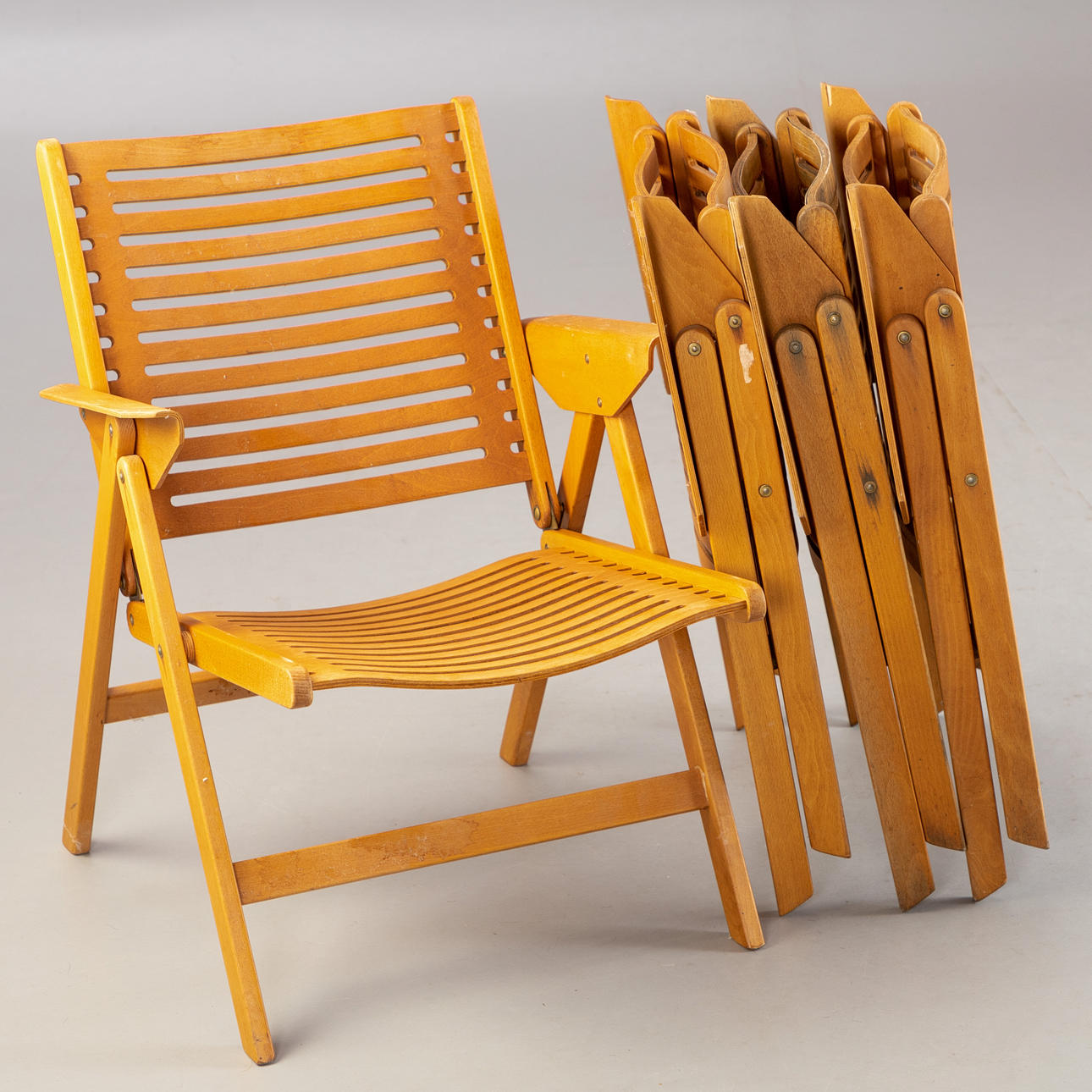 4 sillas plegables 'Rex' de Niko Kralj. Borrador: 1953. Estructura realizada en haya y contrachapado de haya.