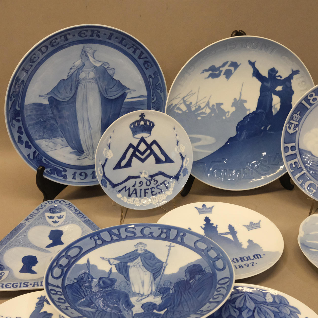 16 piezas Royal Danish, de las cuales una segunda clase. Entre otras cosas sobre el "Reunión de los Reyes Magos en Malmö, 1914, placa conmemorativa de la guerra de Schleswig-Holstein 1848, HC Andersen 1905, 1898, DTF, Estocolmo 1897, placa conmemorativa de Olaf Rye, 1899.