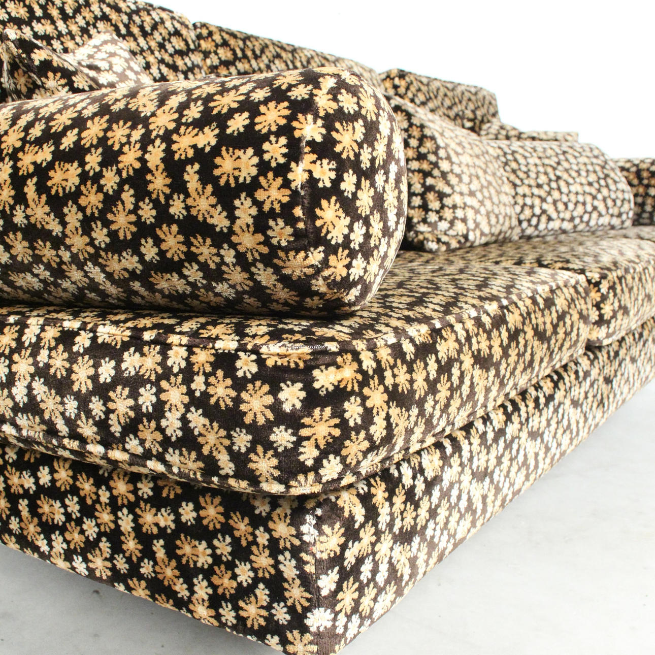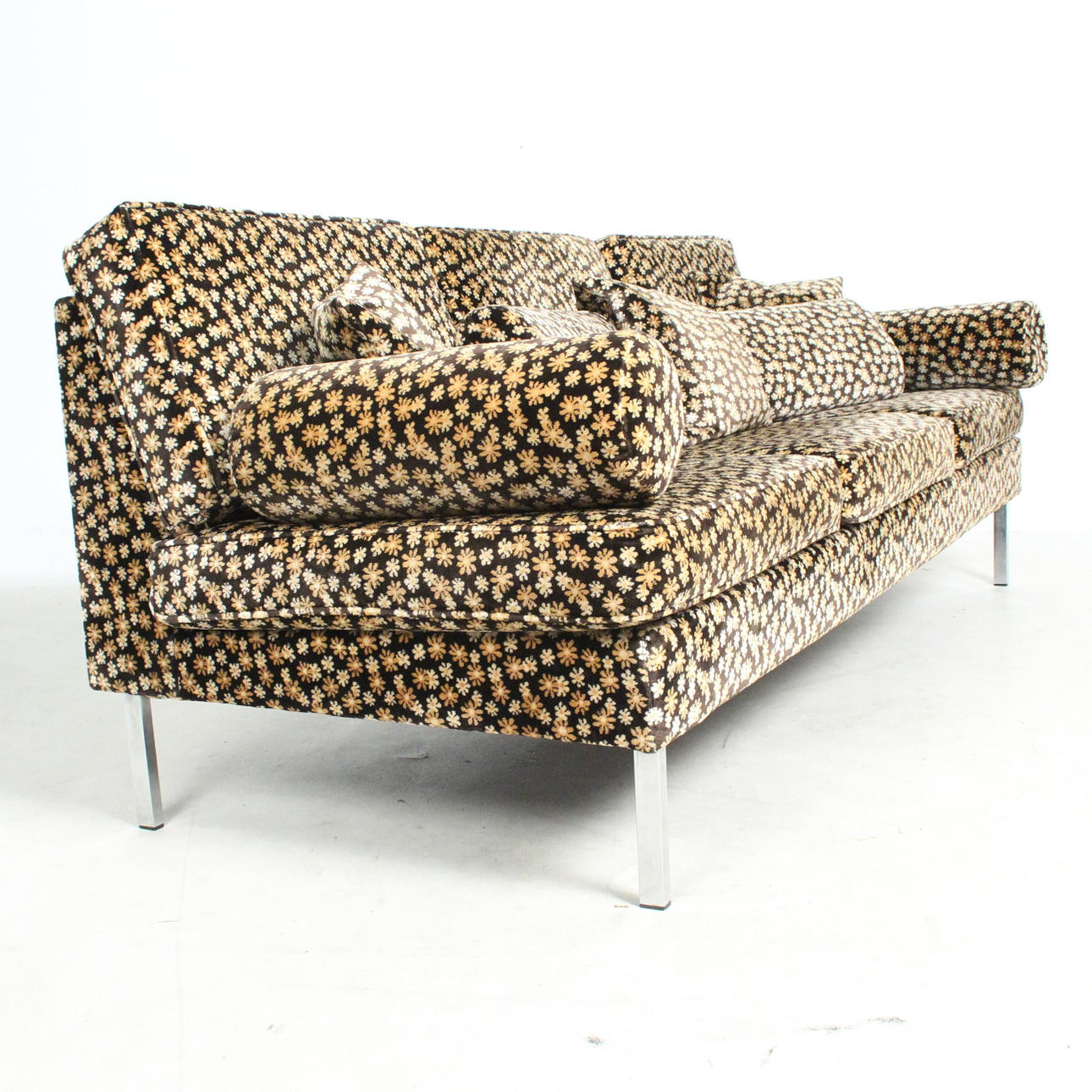 Material: metal, parcialmente cromado, terciopelo con un patrón floral, espuma Dimensiones: H: 80 cm, W: 205 cm, D: 85 cm.