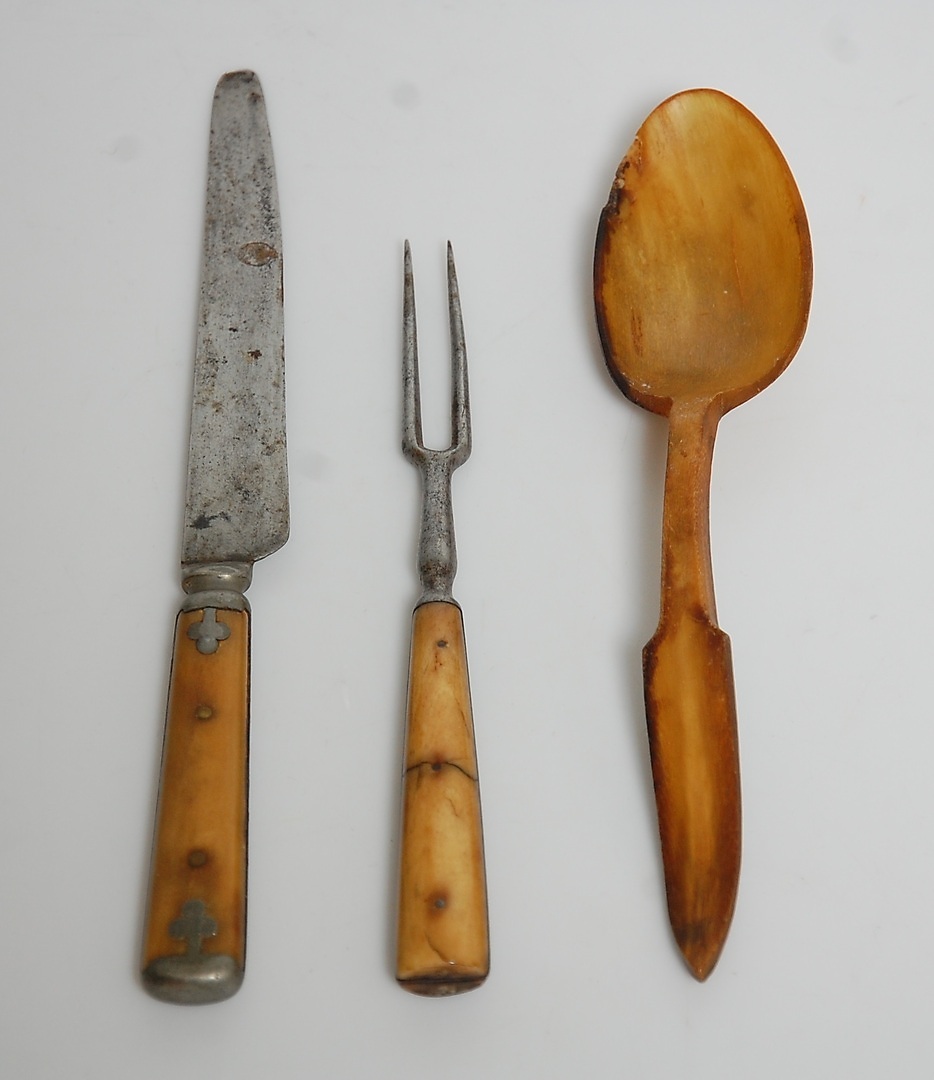 239440. CUBIERTOS, folclore, 3 piezas, siglo XIX.