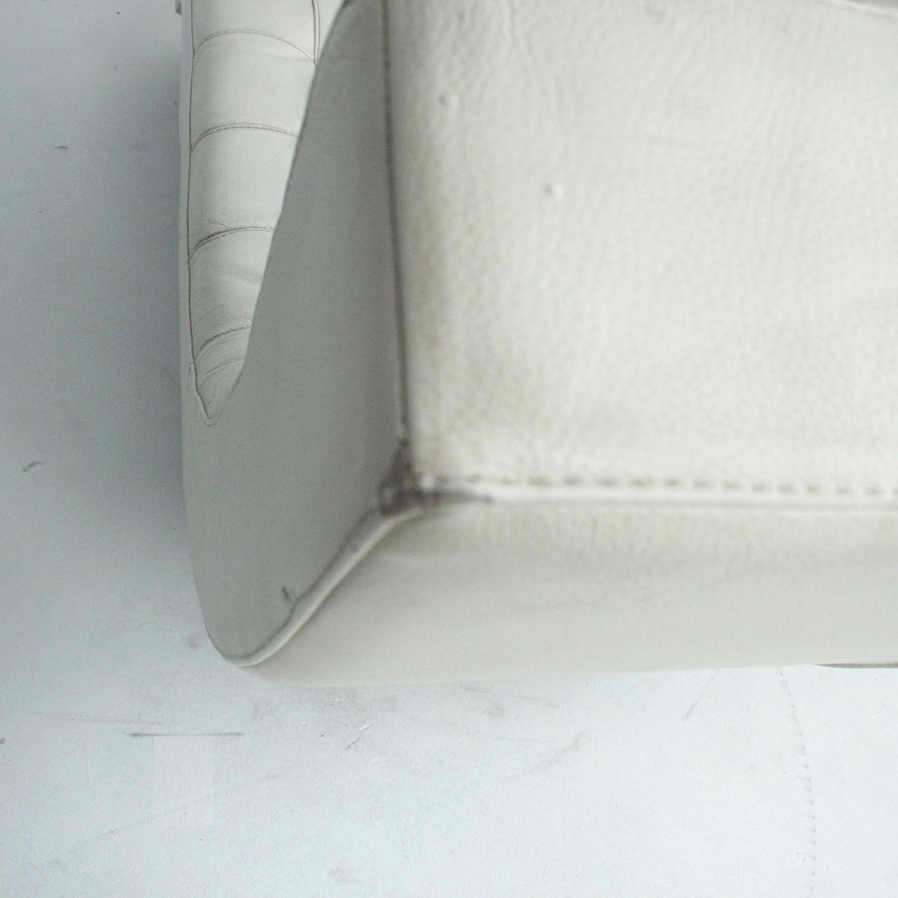 Material: cuero blanco, metal, espuma, subestructura de madera Dimensiones: H: 80 cm, W: 70 cm, D: 225 cm.