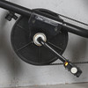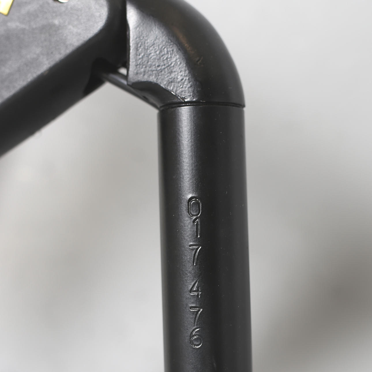 Metal negro, plástico y caucho. Impulsado por correa. Etiquetas sueltas con instrucciones de plegado.