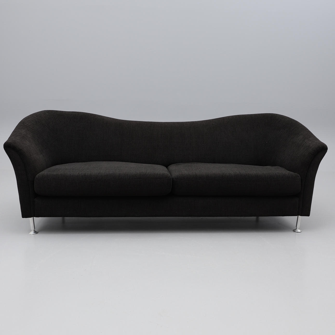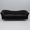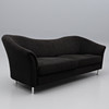 Espalda curvada. Vestido con tela negra. Patas metalicas. Longitud 210, altura del asiento aproximadamente 40 cm.