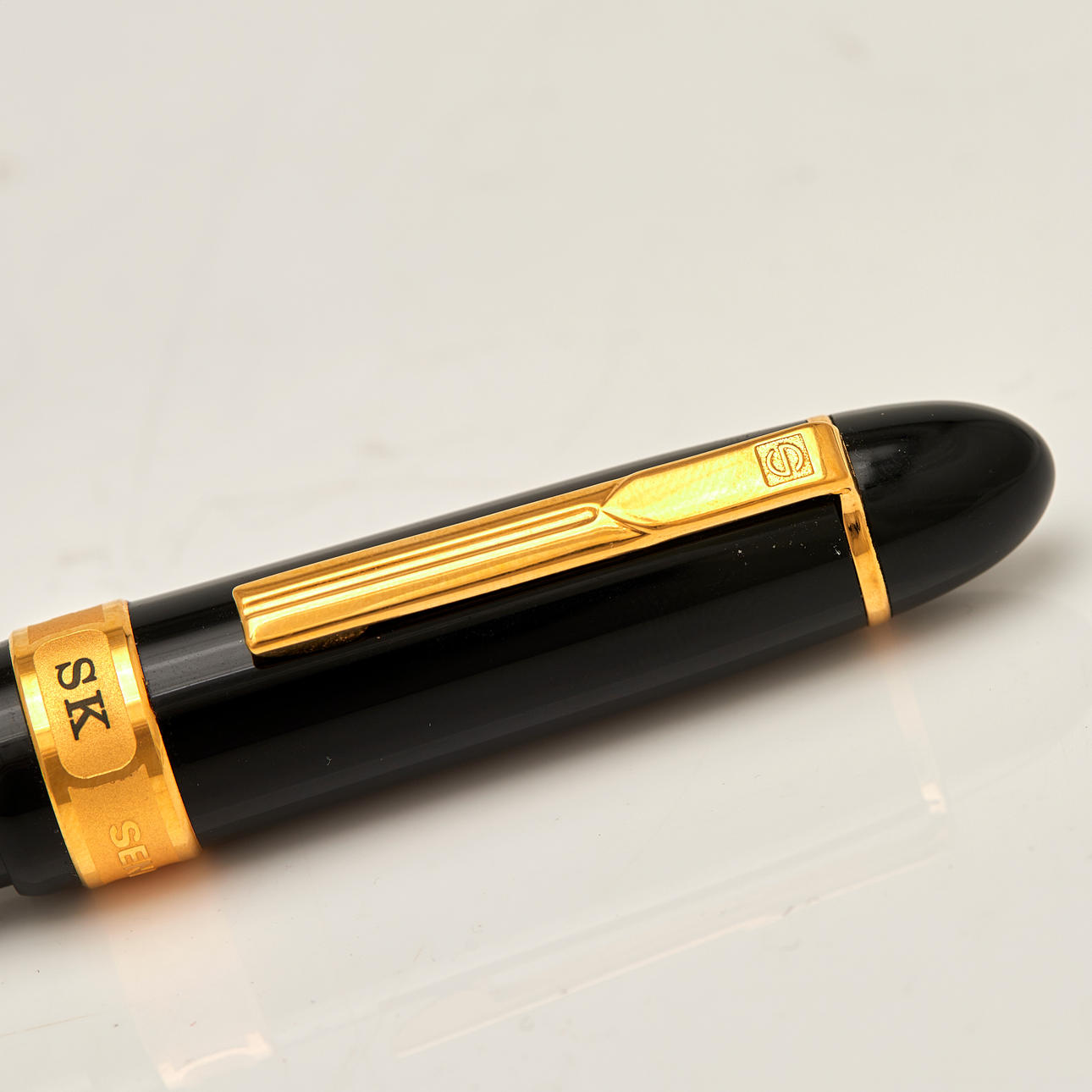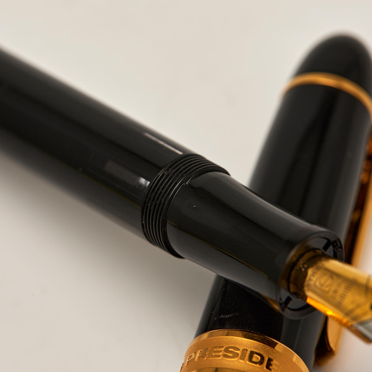 Senador-Presidente, pluma estilográfica. Pluma estilográfica negra con detalles dorados, L.15cm.