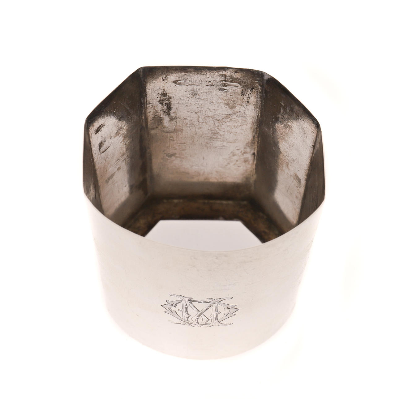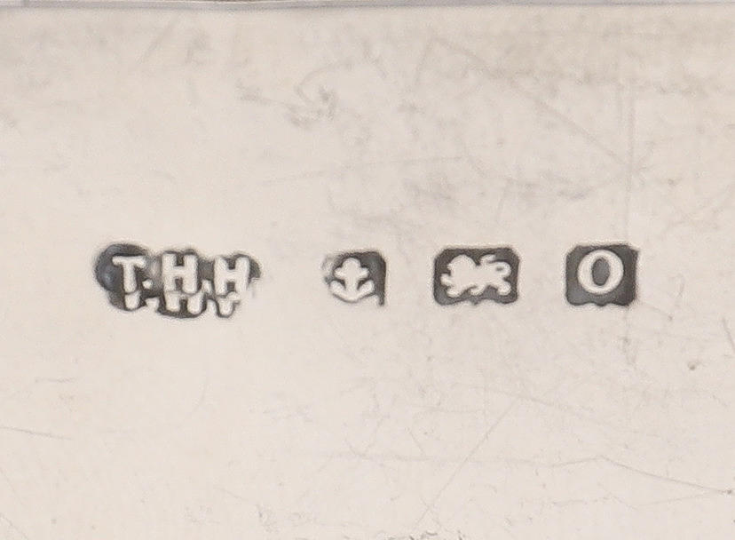 THHazelwood, Birmingham 1913, hexagonal con frente redondeado, grabado con un monograma, que contiene una botella vacía de agua de colonia, funda, 5,5 cm x 8 cm, 45,8 g, 1,46 oz.