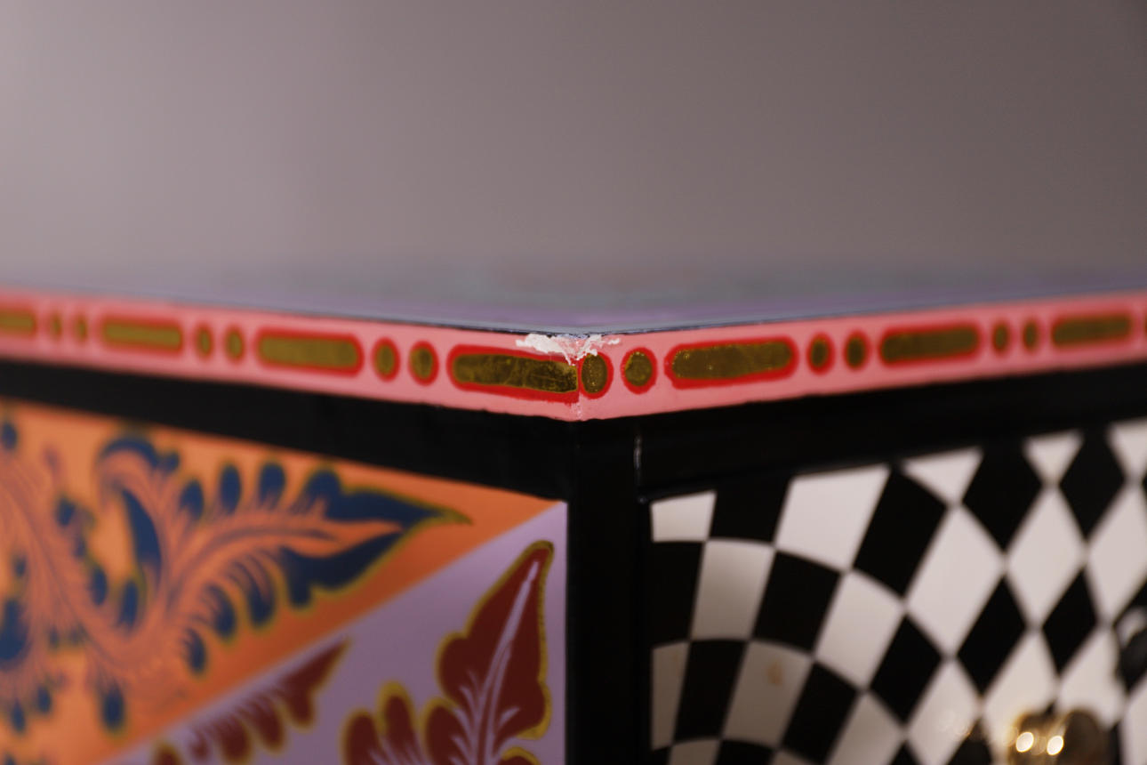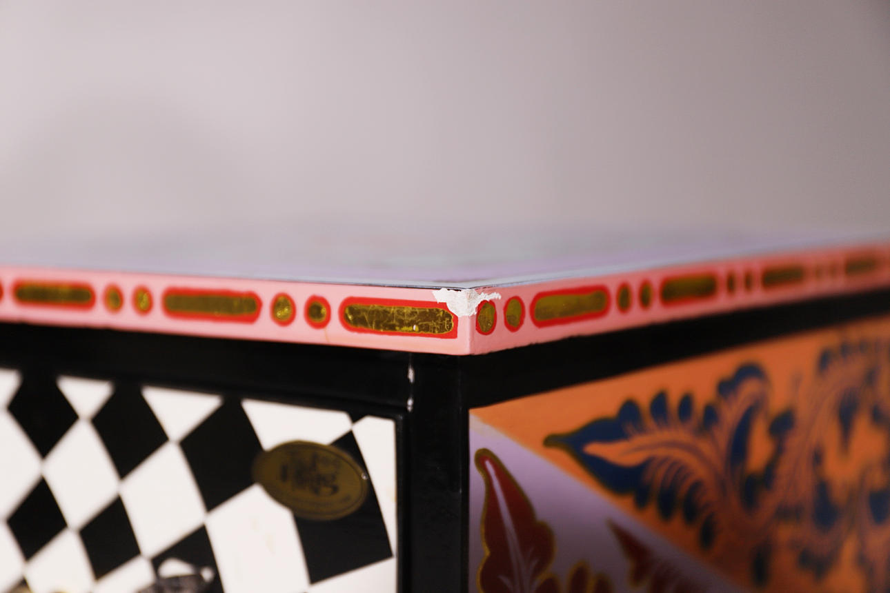 TOM'S DRAG. MESA AUXILIAR. MADERA POLICROMADA.