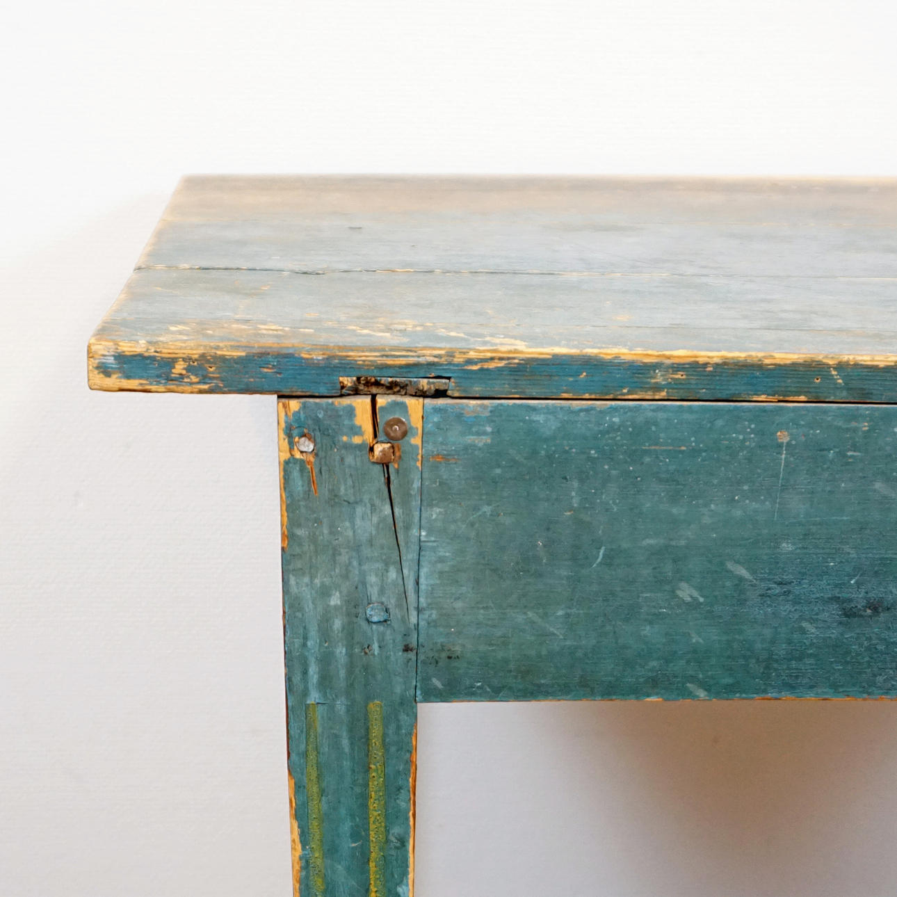 Mesas con desgaste, daños, reparaciones, pérdida de color, grietas secas.