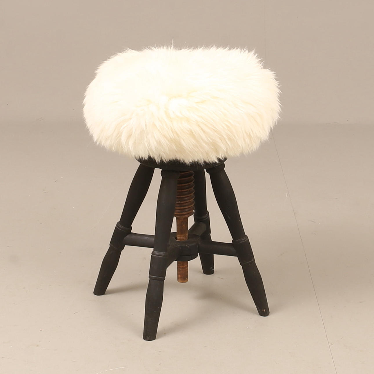 2428538. Taburete, madera con piel de oveja.