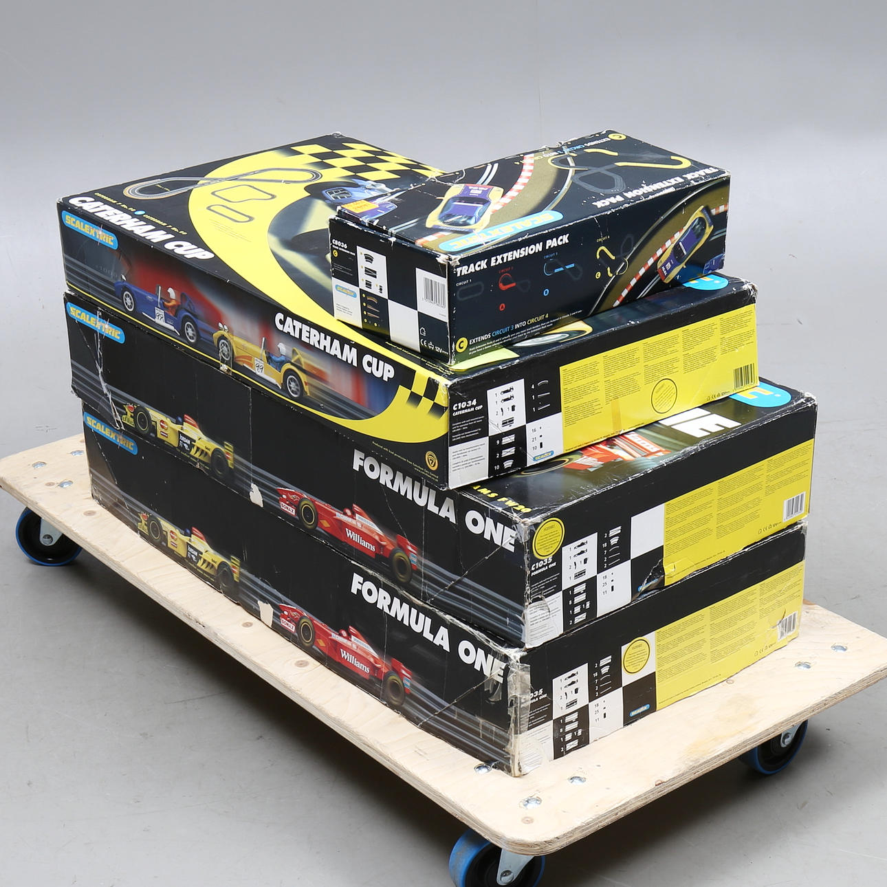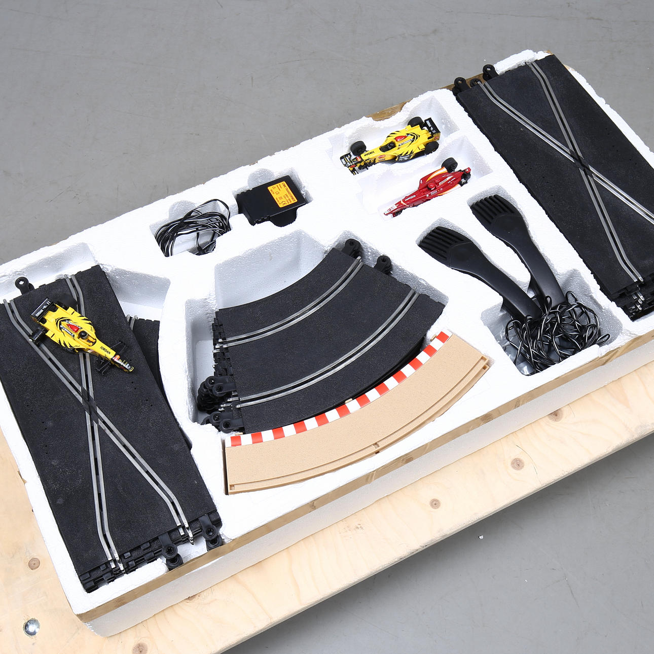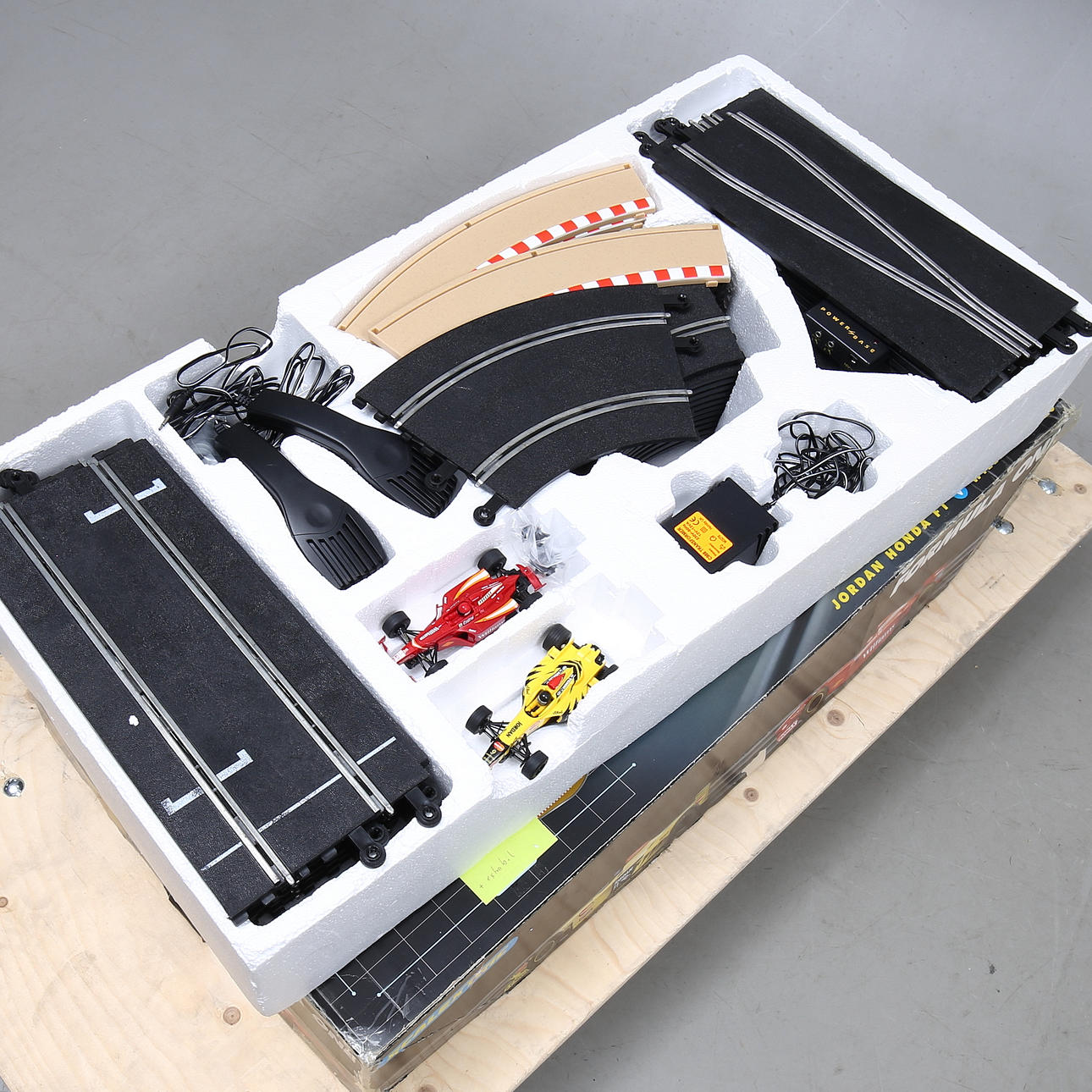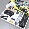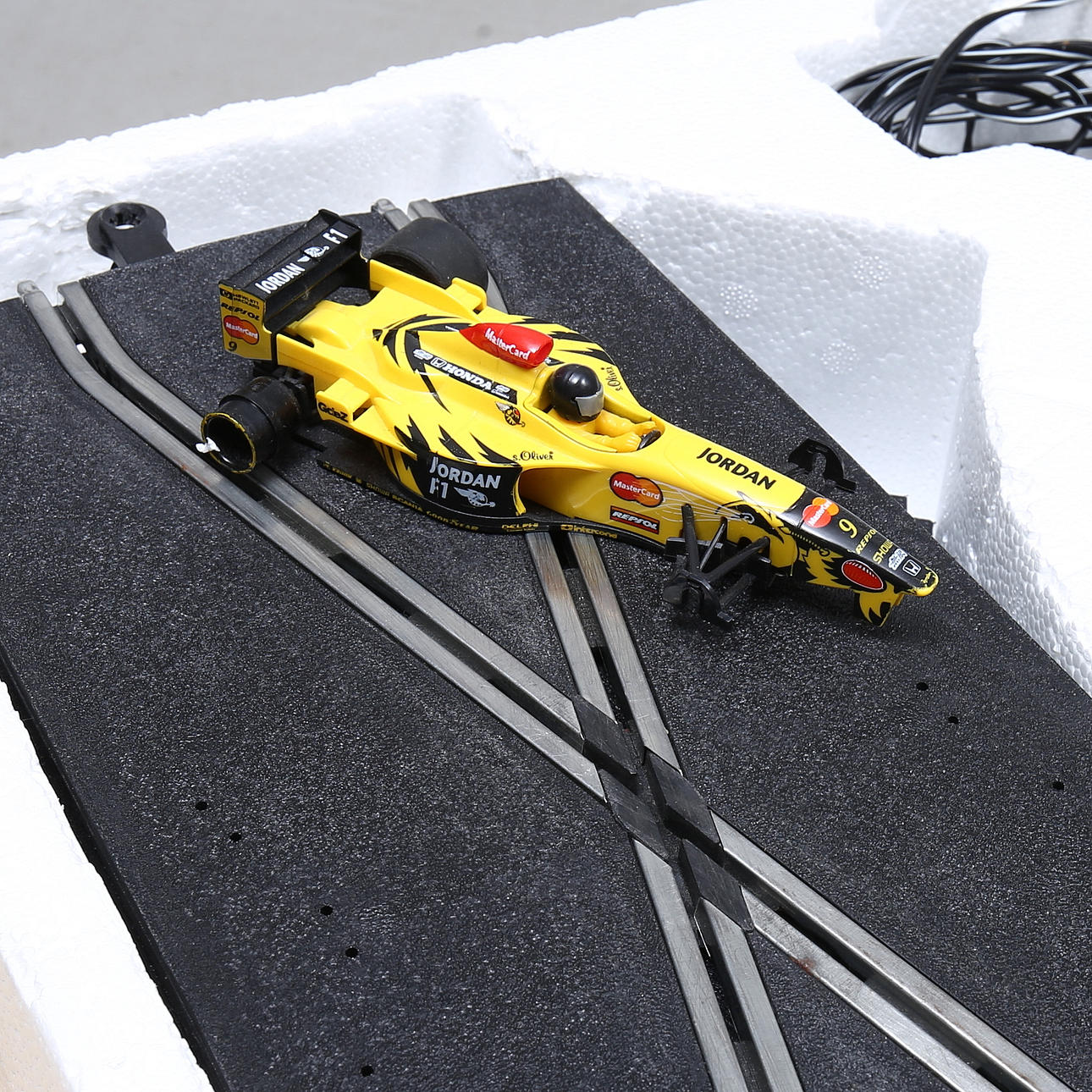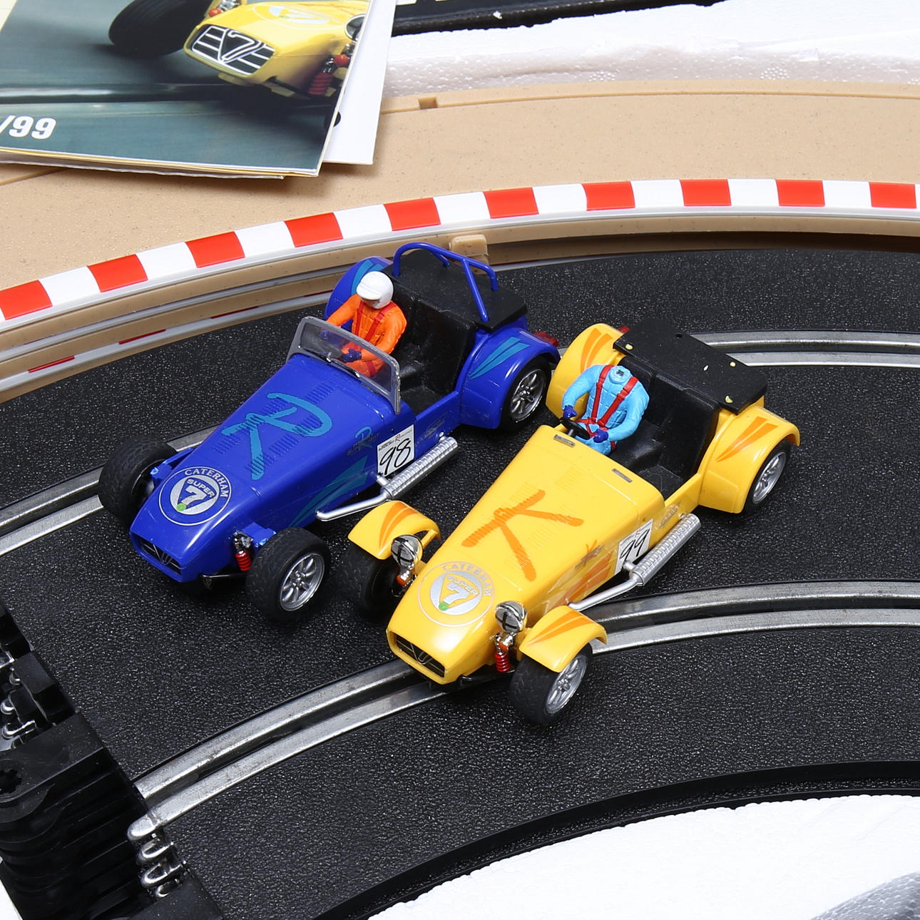 2 pistas "Formula One", 1 pista "Caterham Cup", paquete de extensión de pista y accesorios que incluyen cuentarrevoluciones, piezas de pista y coches adicionales.