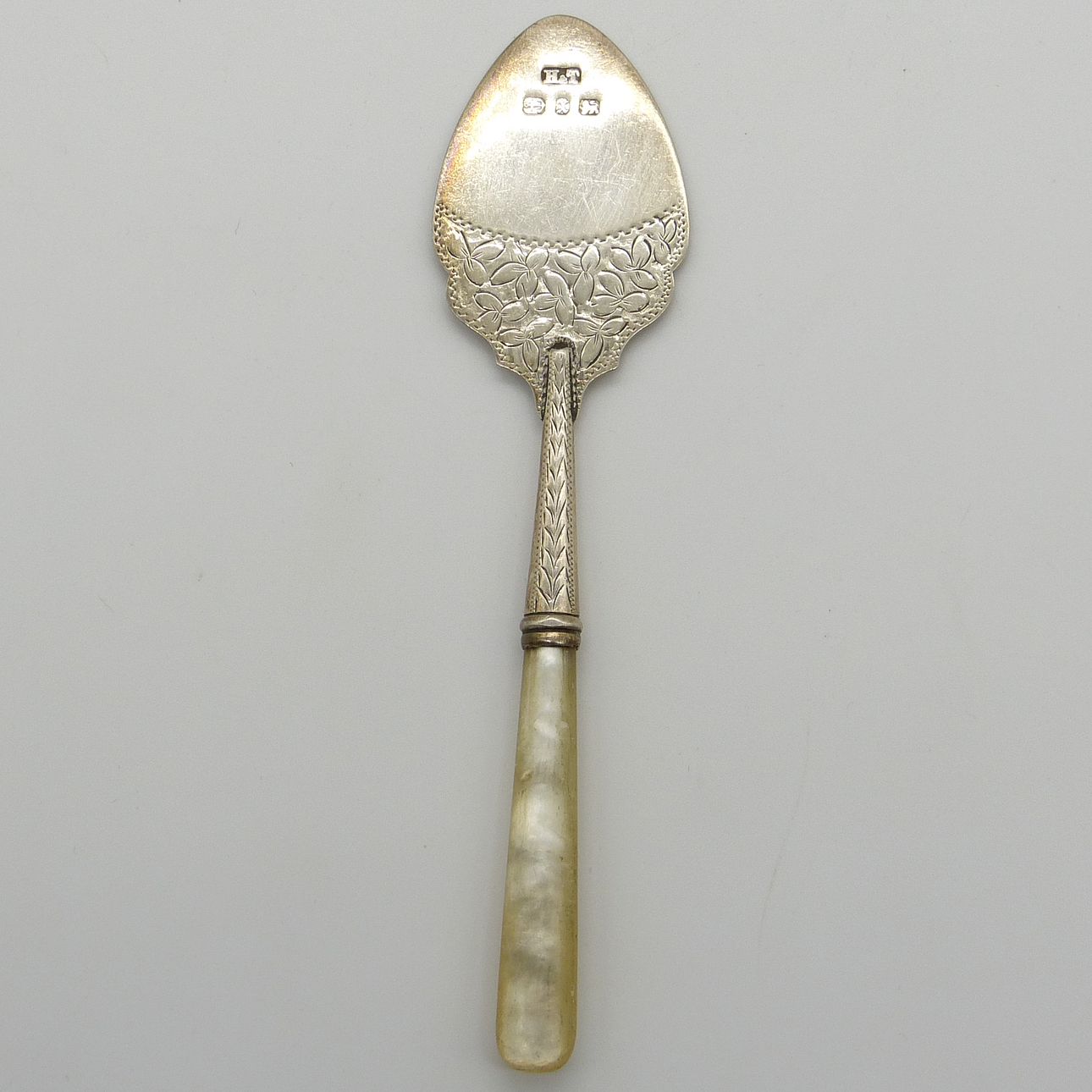 1x Servidor de tarta/pastelería de plata de primera ley, con mango de nácar. realizado por Hilliard & Thomason en Birmingham 1879.