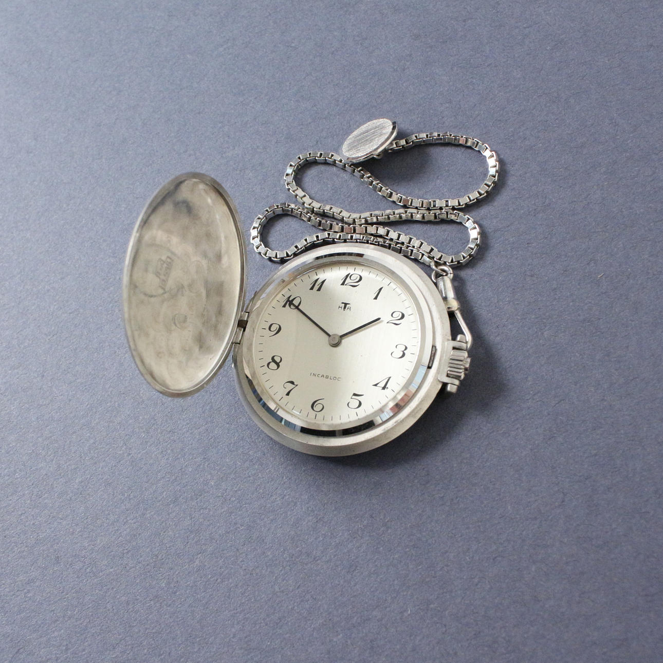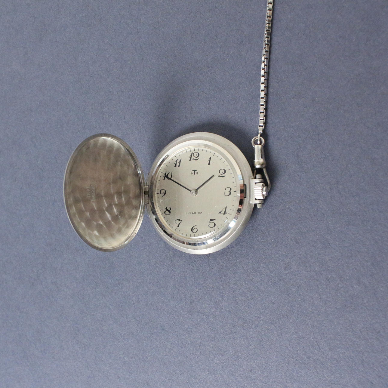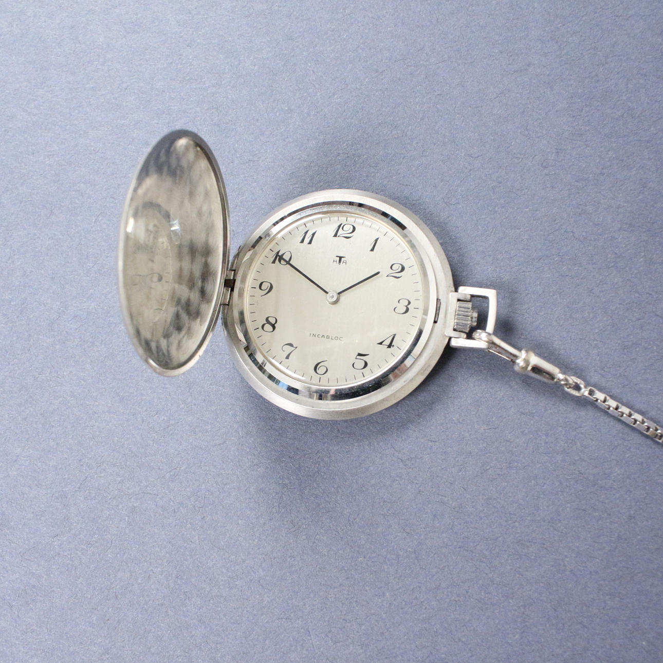 Reloj de bolsillo HTA con cadena, oro blanco 585, peso con movimiento aprox. 45 gramos.