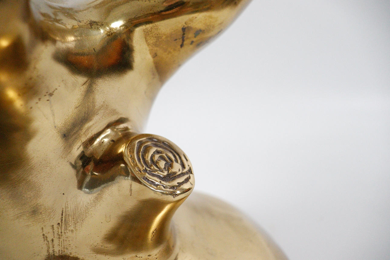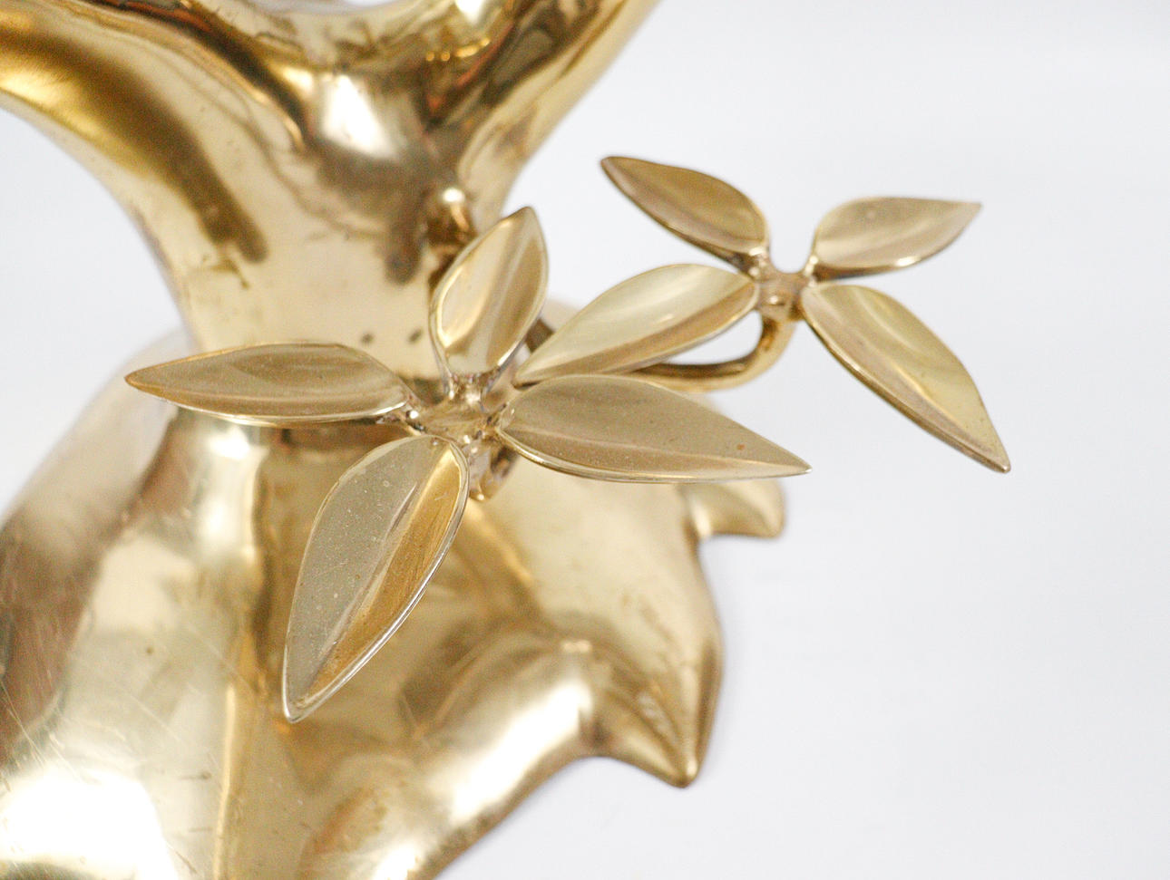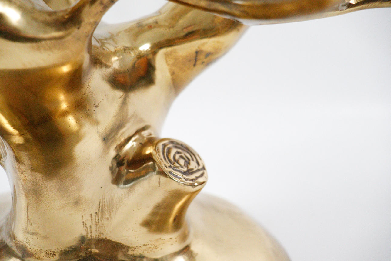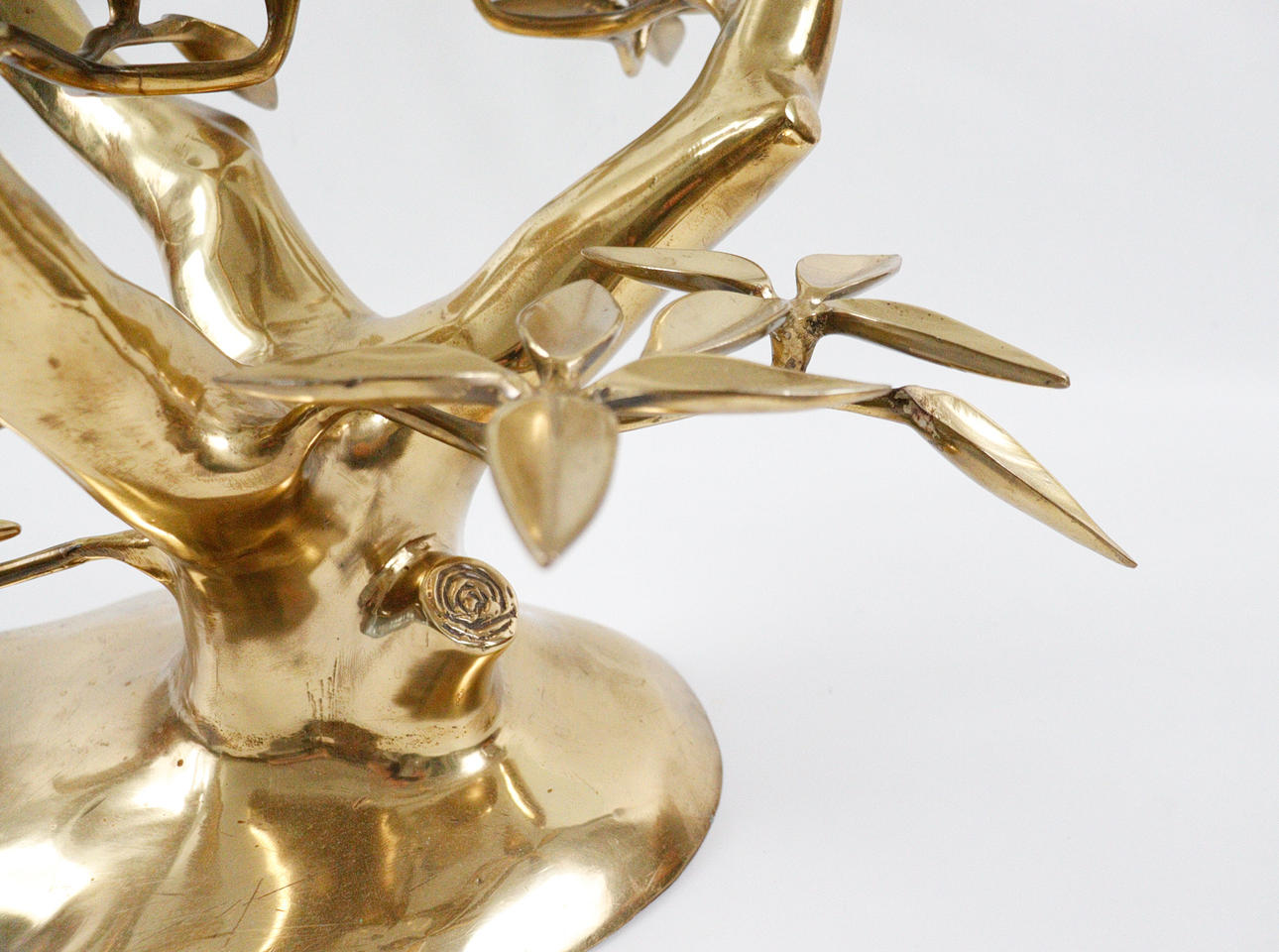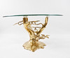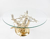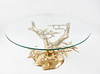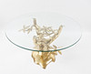 WIlly Daro, mesa de centro, 'Bonsai', años 70, construcción de latón macizo, dorado al fuego, con tapa redonda de cristal, A. 41 cm, Ø: 80 cm.