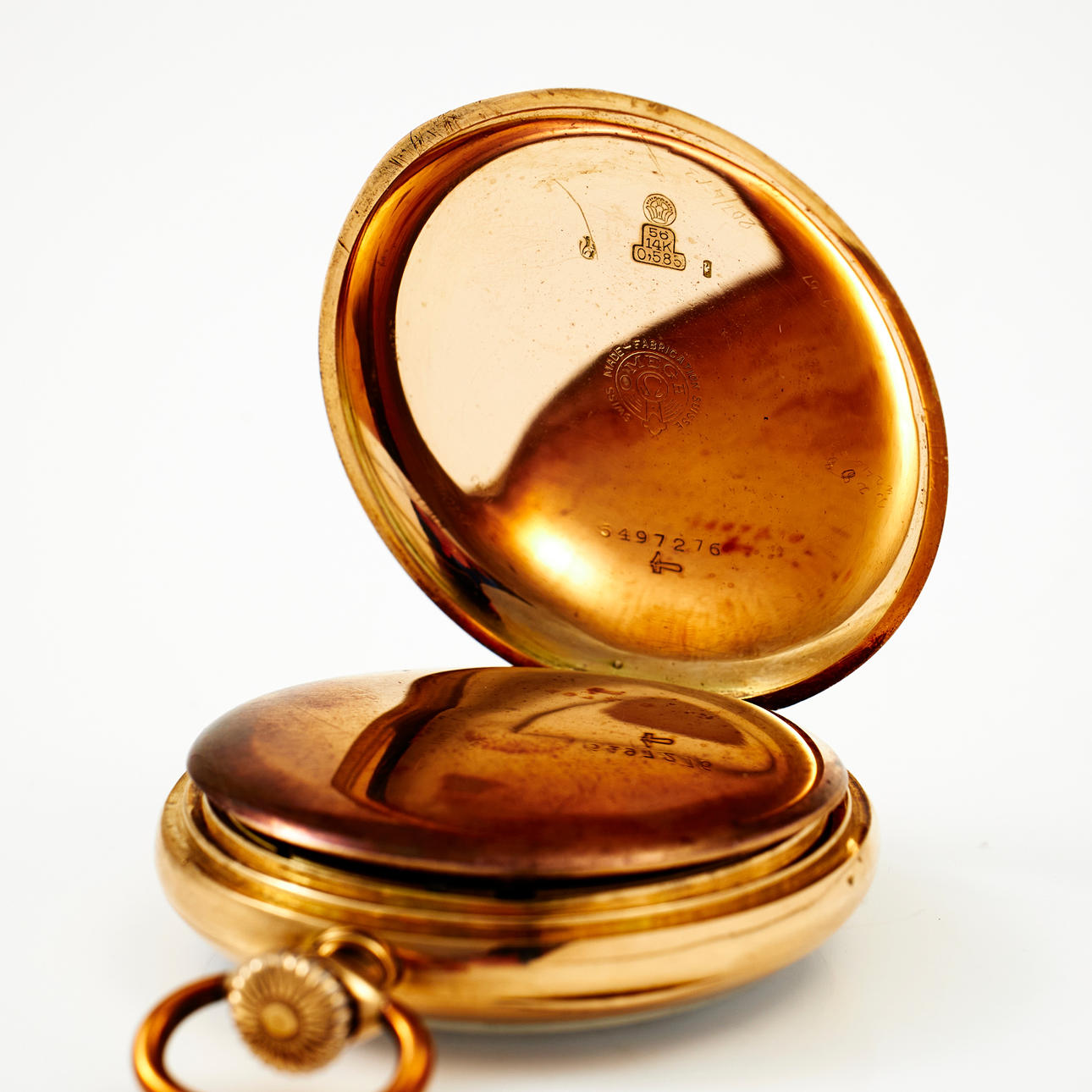 Esfera esmaltada en blanco, tapa interior de metal, caja núm. 5497276, diámetro 49 mm.