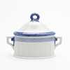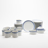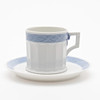 12 tazas con platillos, jarra de crema, azucarero con tapa y 12 platos.
