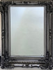 Un gran espejo de cristal biselado con marco plateado, 88 x 121 cm.