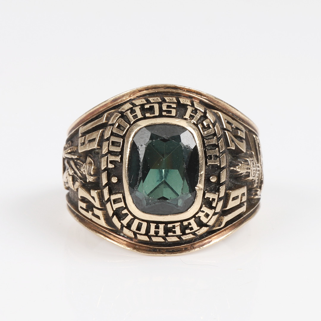 2461958. ANILLO, oro 10K, piedra verde, Balfour.