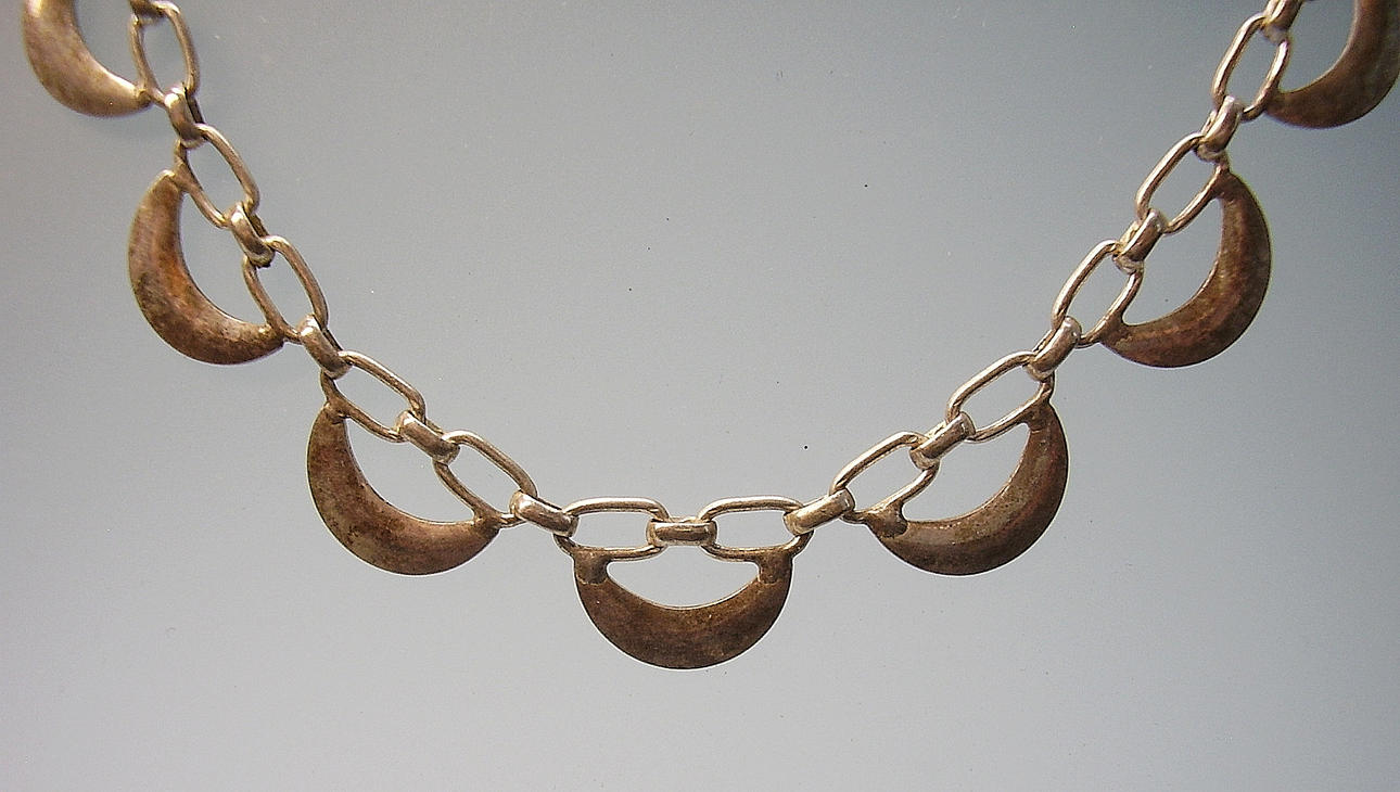 El collar antiguo de la era Bauhaus está hecho de plata 835 y contrastado. La parte central consta de arcos de plata pulida.
