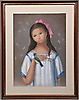 REGINA RAULL. pastel, niña con pájaro.
