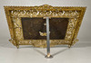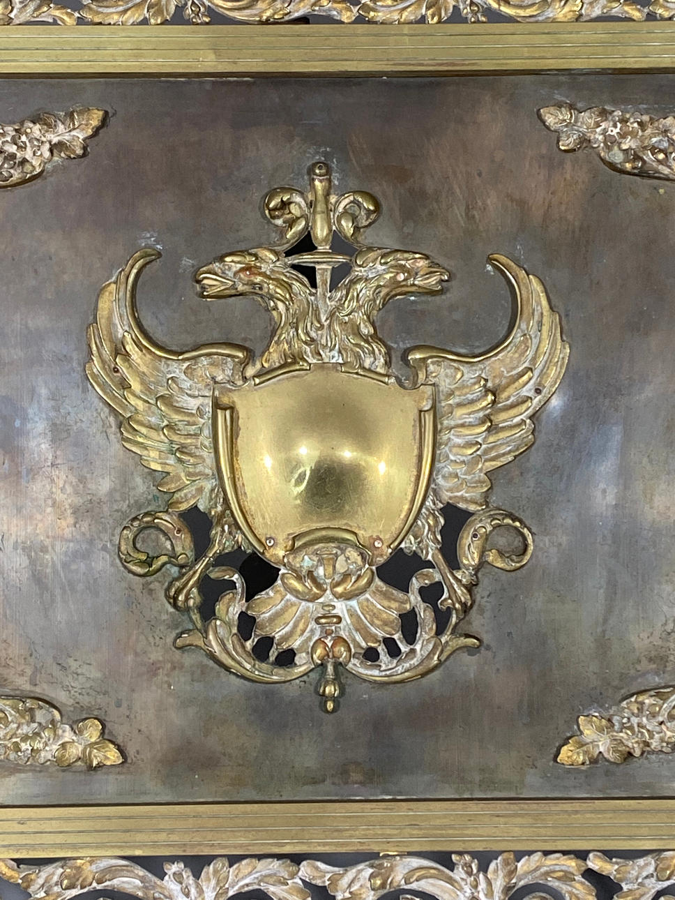 PARA CHISPAS EN BRONCE LABRADO CON ESCUDO HERÁLDICO.