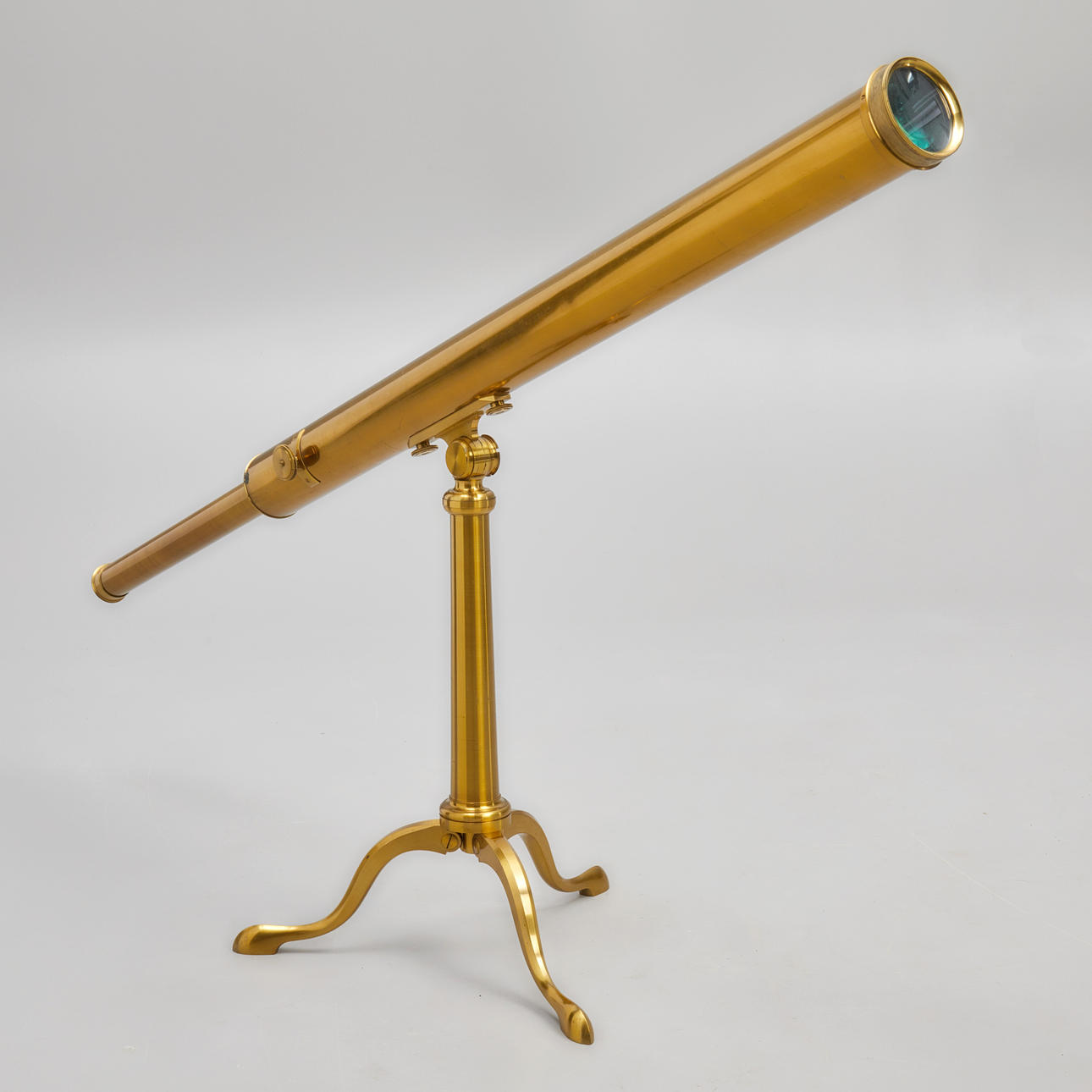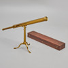 Prismáticos de latón con soporte y extensor de lente. Caja original de caoba con interior, etiquetada como "Bleuler, fabricante de instrumentos ópticos, matemáticos y filosóficos, 27 Ludgate Street, Londres"