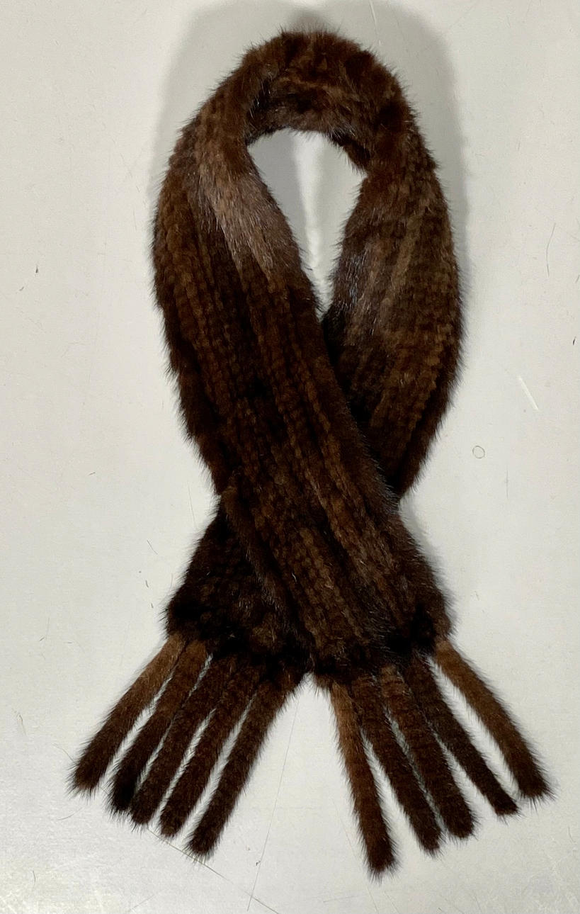 BUFANDA DE VISÓN TRENZADO CON FLECOS.