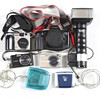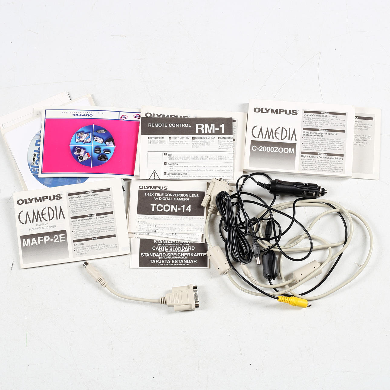 1 cámara de pc, Sony Cyber-Shot 1 cámara de pc, Panasonic Lumix DMC-FX100 1 cámara de pc, Olympus C-2000 Z 1 cámara de pc, Canon EOS 650 con flash y bolsa 1 lente de pc, Olympus 08.x Lente ancha de 55 mm 1 pc lente, teleobjetivo Olympus 1.45X, 46 mm 3 lectores de tarjetas.
