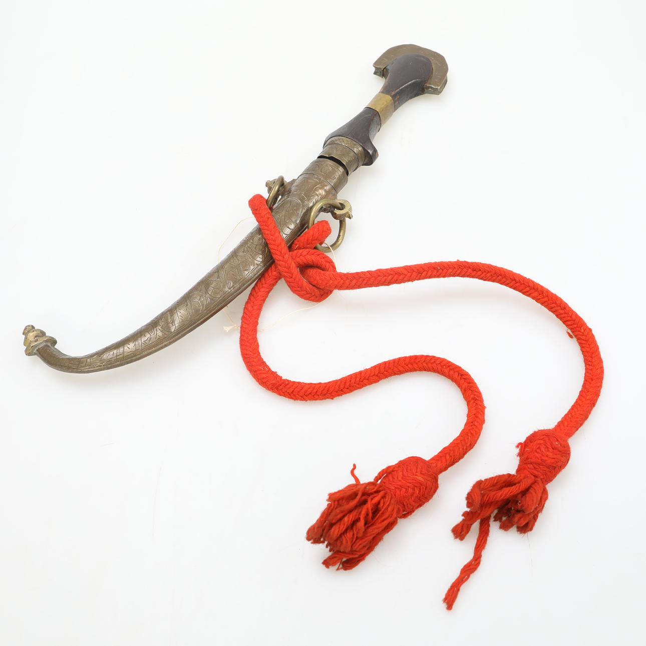 Longitud total aproximadamente 41 cm, longitud de la hoja aproximadamente 23,5 cm. Decorado con una cuerda roja.