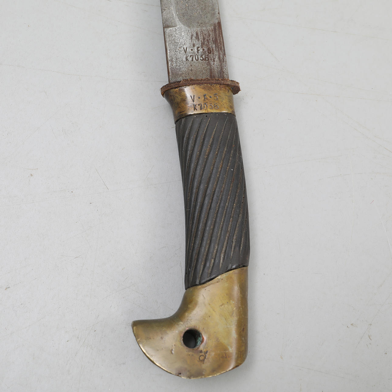 La hoja está equipada con un surco de sangre y está doblemente rectificada en el punto más externo.