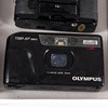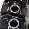4 SLR: Asahi Pentax Spotmatic, 2x Konica Autoreflex TC, Chinon CM-3. Visor: Yashica Minister y 3 cámaras compactas Olympus TRIP AF mini, Minolta AFC y Kodak 235.