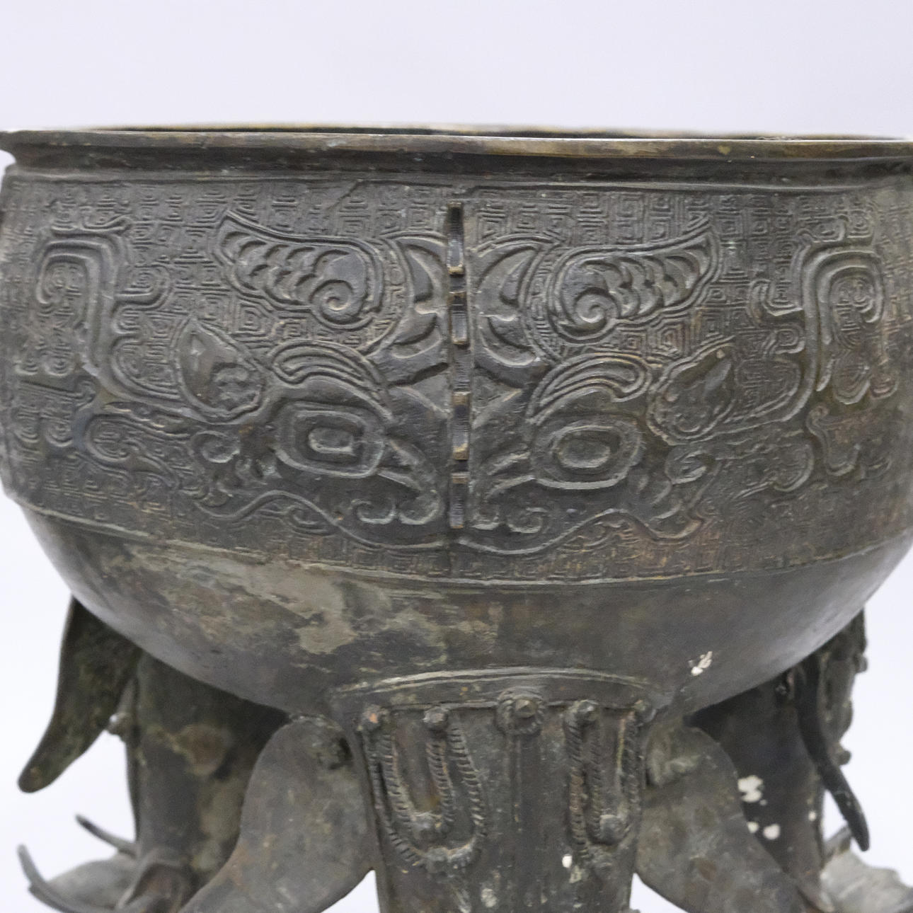 Con decoración de animales mitológicos. Parte inferior marcada con cuatro caracteres. Altura: 59 cm aprox. Diámetro: aproximadamente 28 cm.