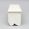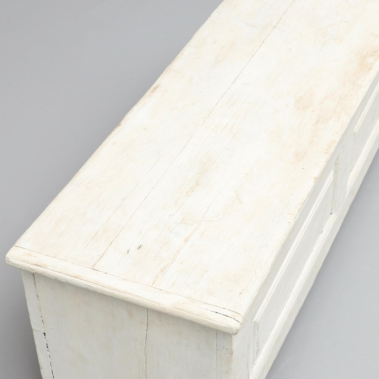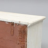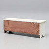 Pino pintado de blanco. Forma rectangular con tapa abatible. Largo 121, ancho 38, alto 44 cm.
