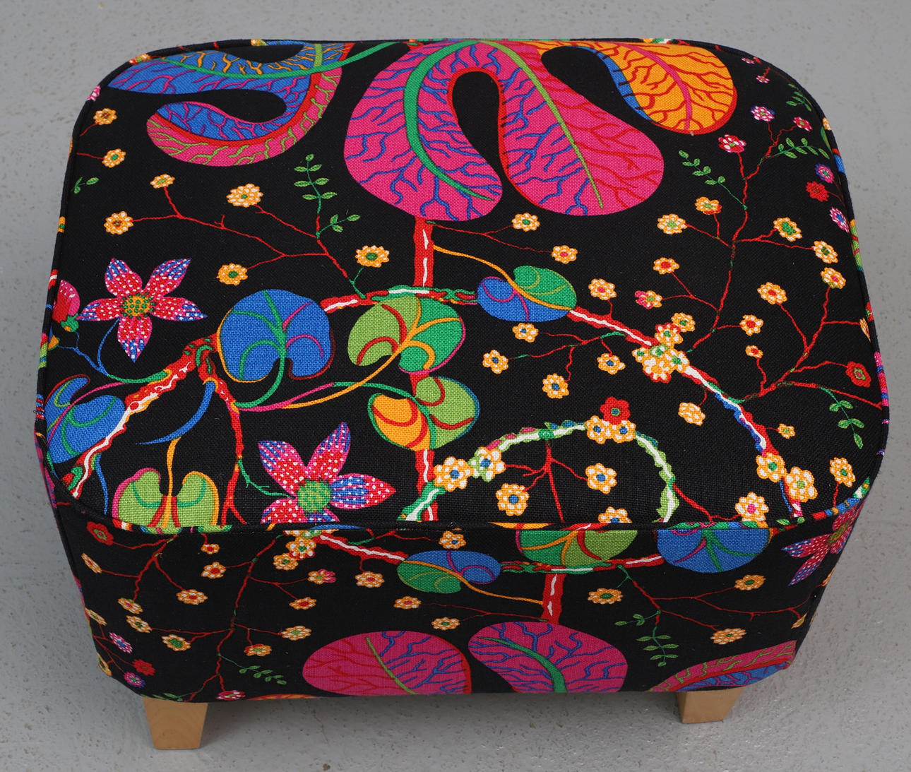 Taburete, tapizado con "Tehran" de Josef Frank, madera.