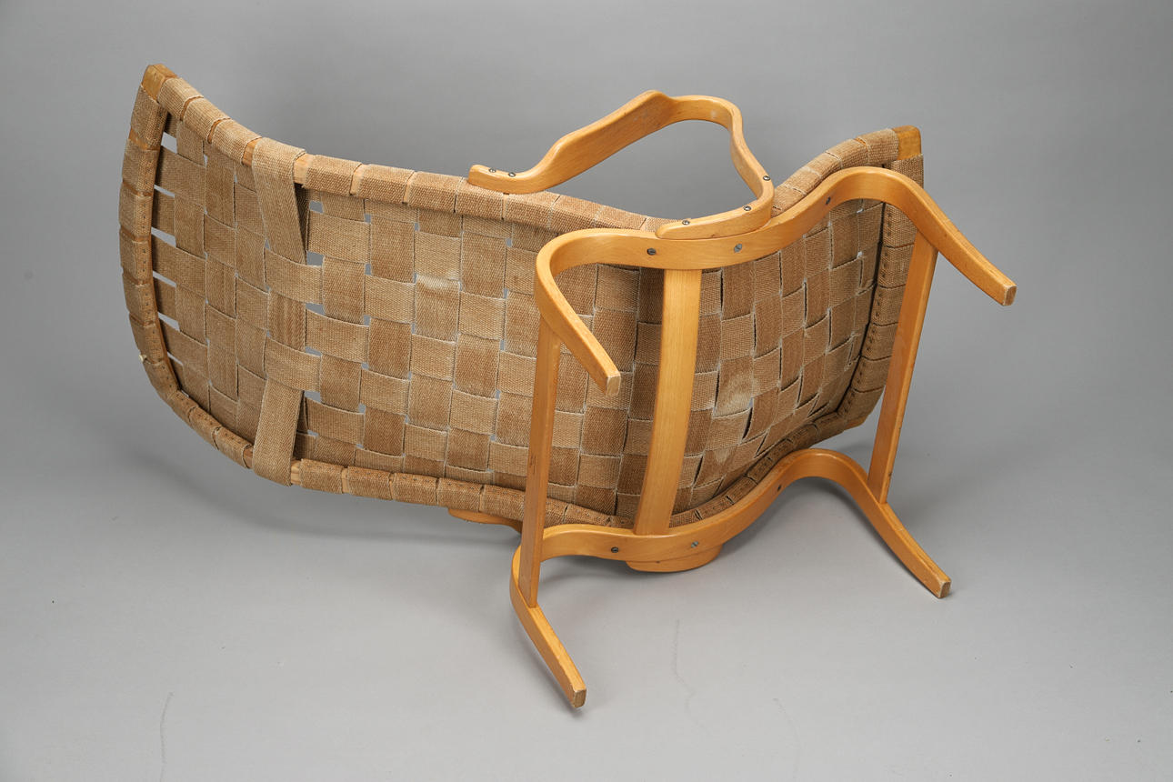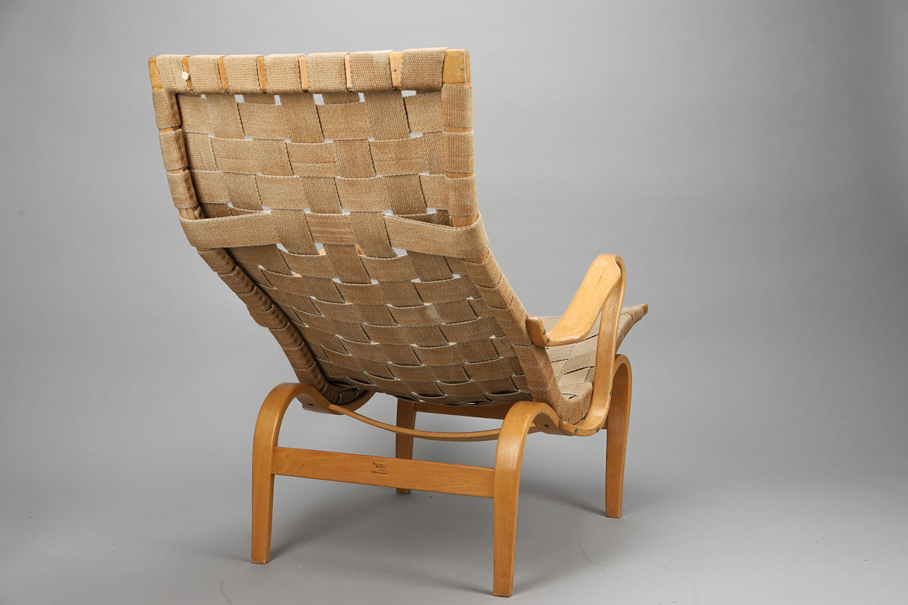 2545439. BRUNO MATHSSON. Butaca "Pernilla 1", haya/cincha, marca.