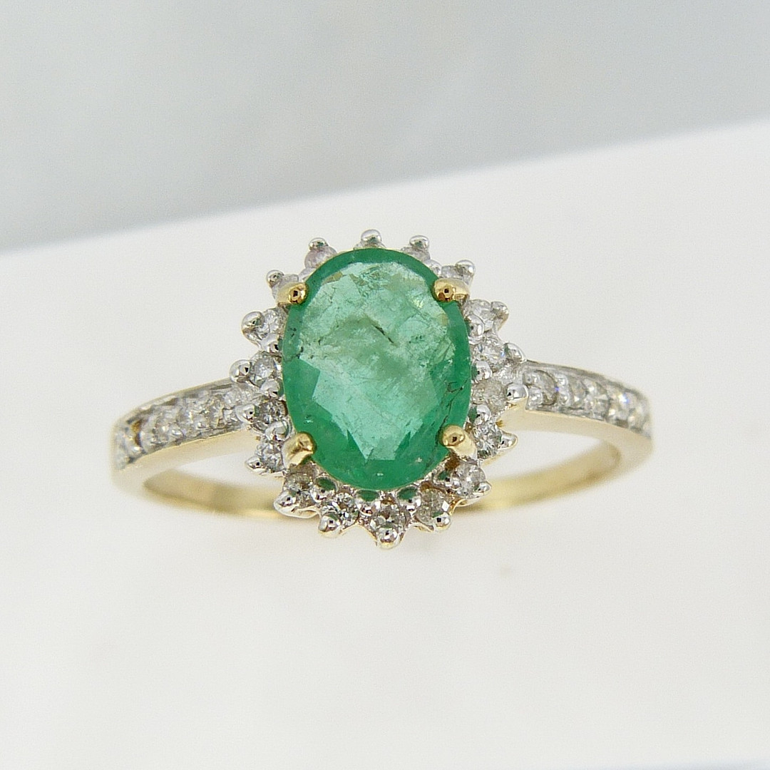 2549281. anillo de racimo de ESMERALDA Y DIAMANTE.