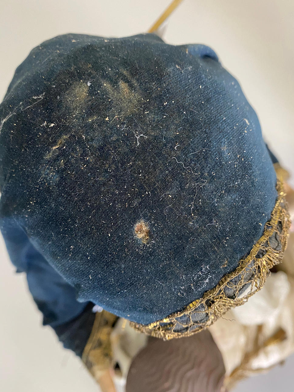 El mantón de la Virgen presenta ligeros deshilachados en el bordado.