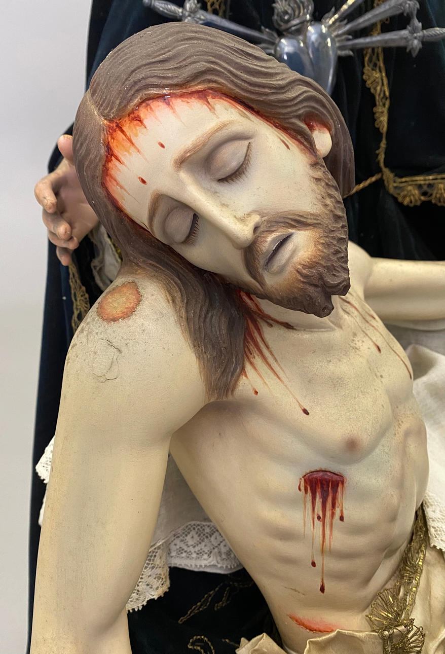 IMAGEN DE VIRGEN DOLOROSA CON CRISTO YACENTE. CIRCA 1900.