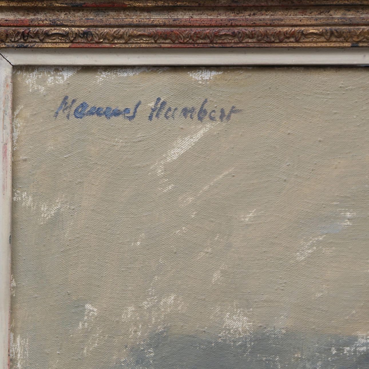 En buen estado. Tela ligeramente destensada. Marco en madera pintada y parcialmente dorada.
