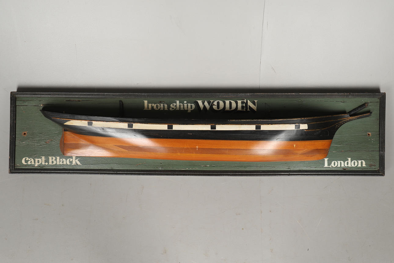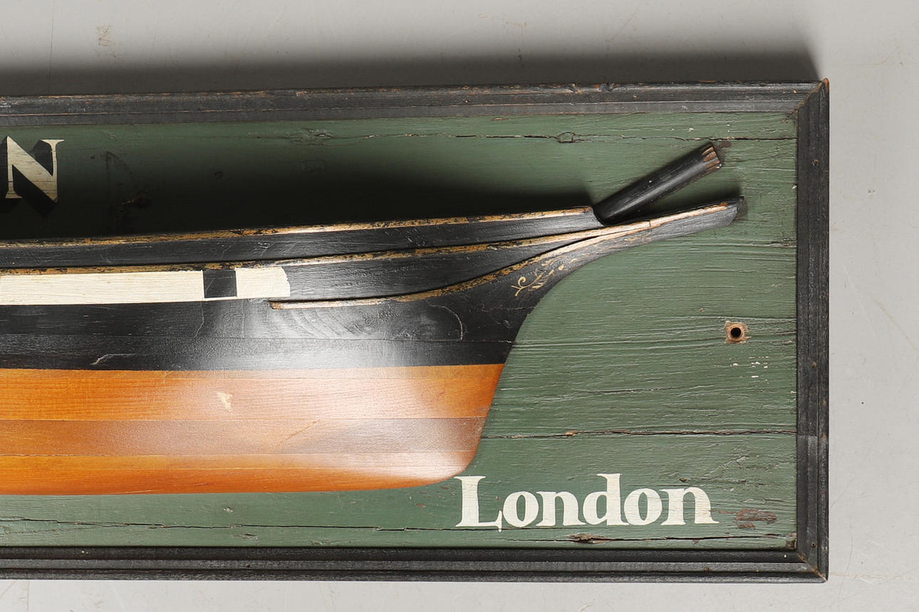 Siglo XX, el modelo pintado y moldeado titulado: Iron Ship Woden, capt. Negro, Londres, sobre tablero trasero de panel pintado.