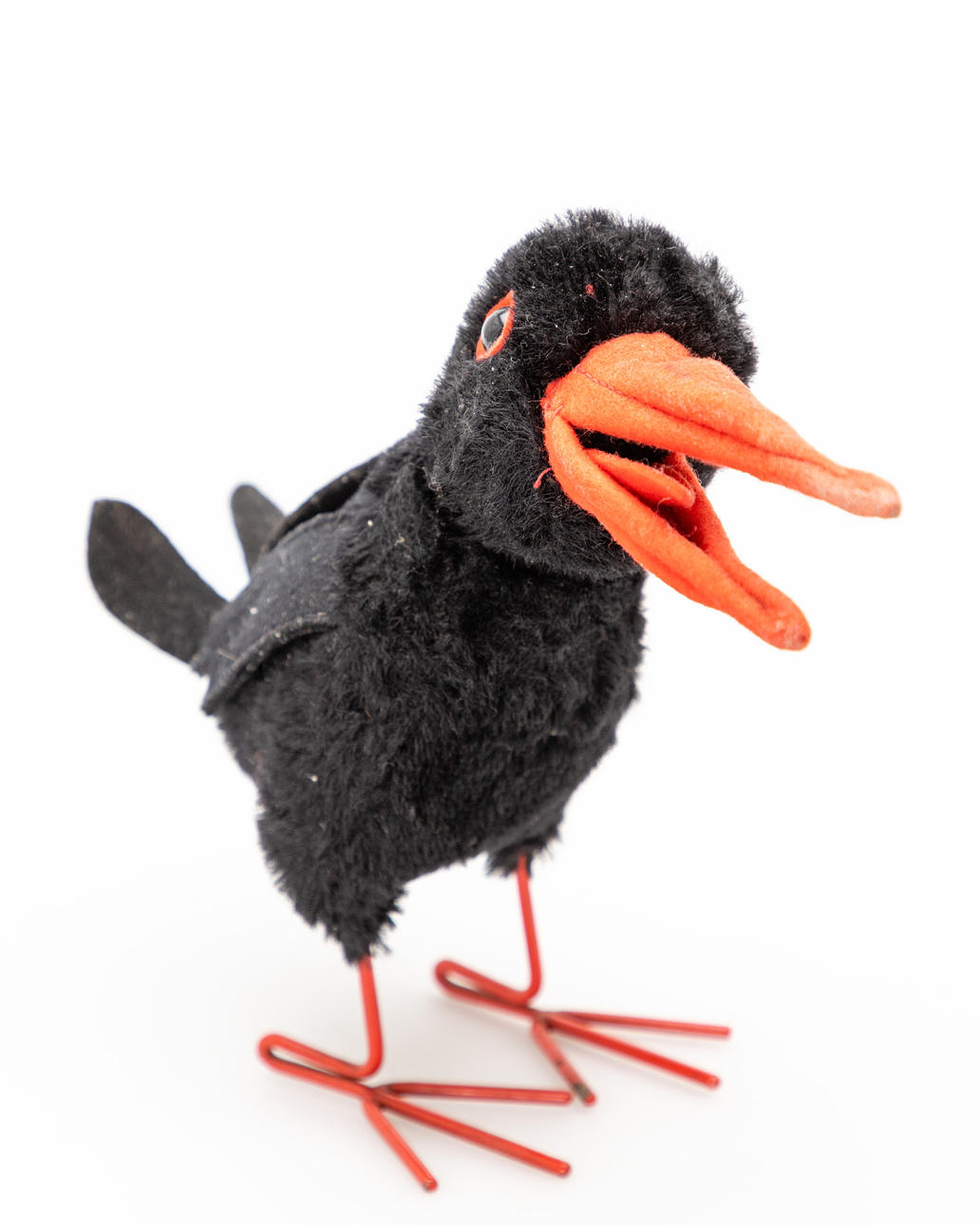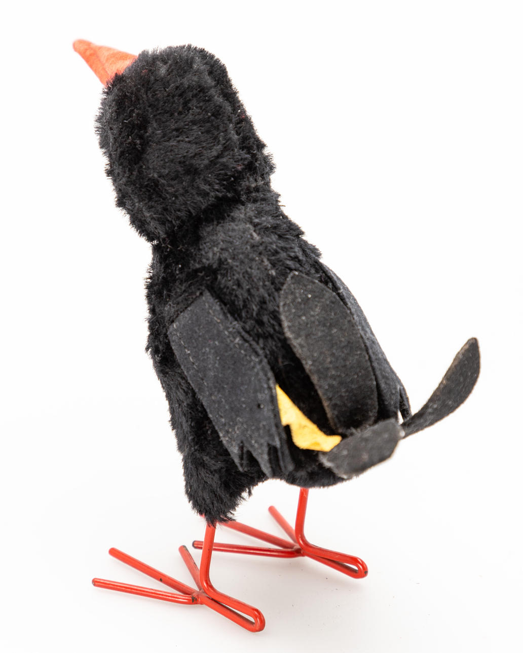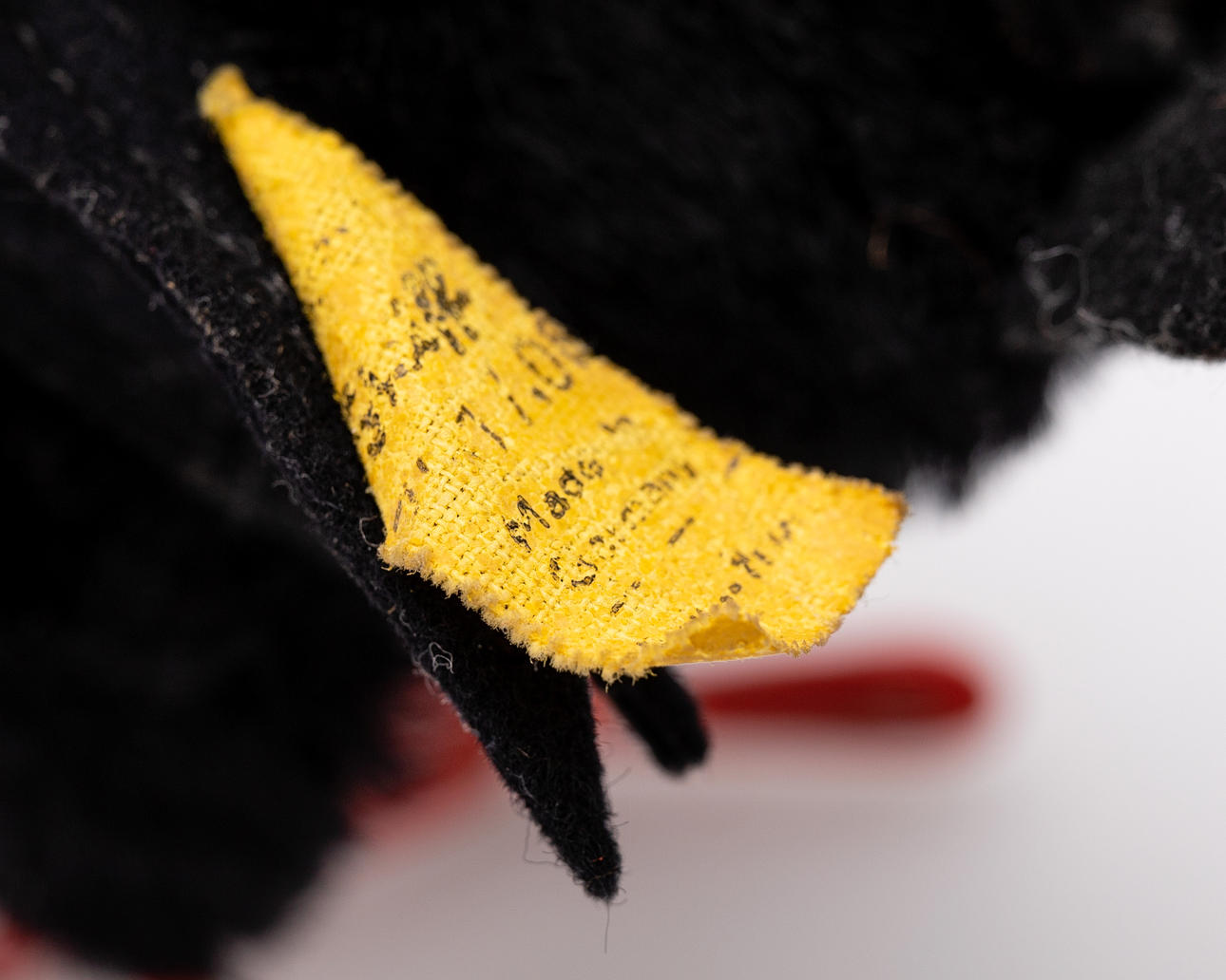 Raabe, botón en la oreja con bandera, felpa y fieltro, patas de metal, tamaño aprox.: 16,5 cm.