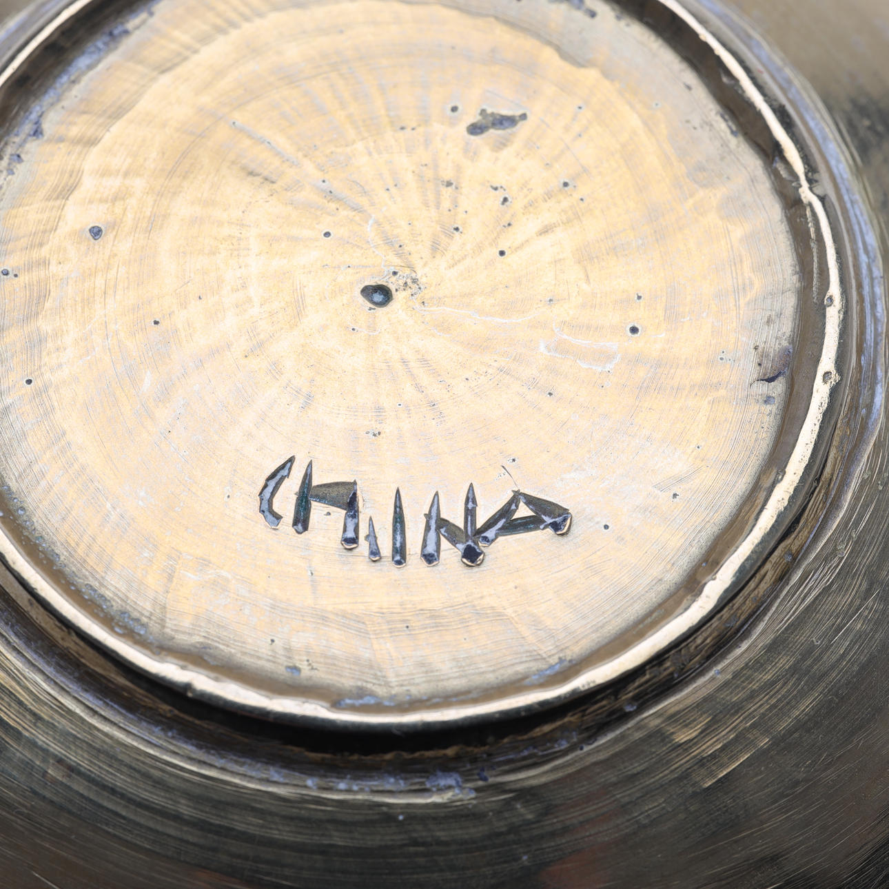 Decoración grabada a mano. Altura: aproximadamente 4,5 cm Diámetro: aproximadamente 11 cm.