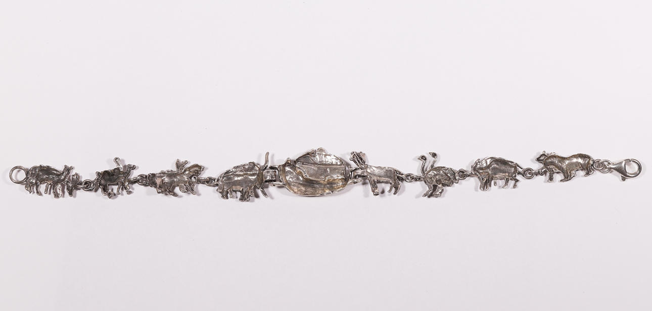 Punzonada 925. Distintas parejas de animales de camino al arca de Noé que se sitúa en el centro de la pulsera.