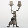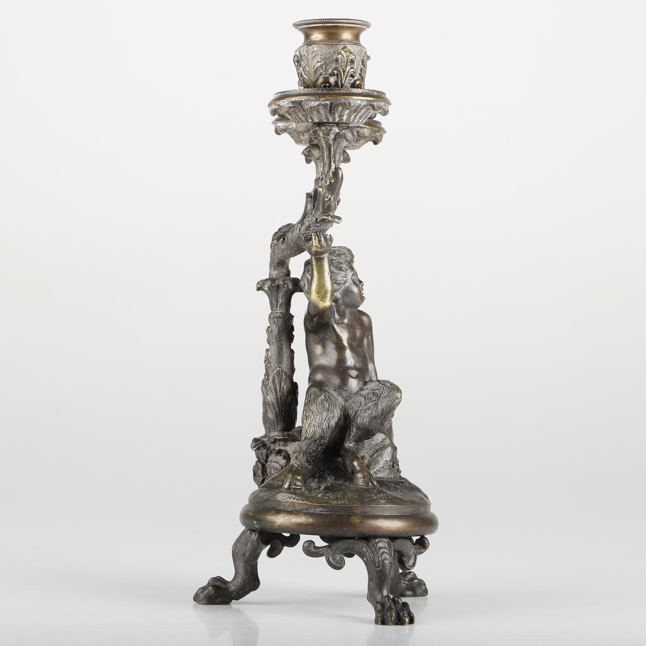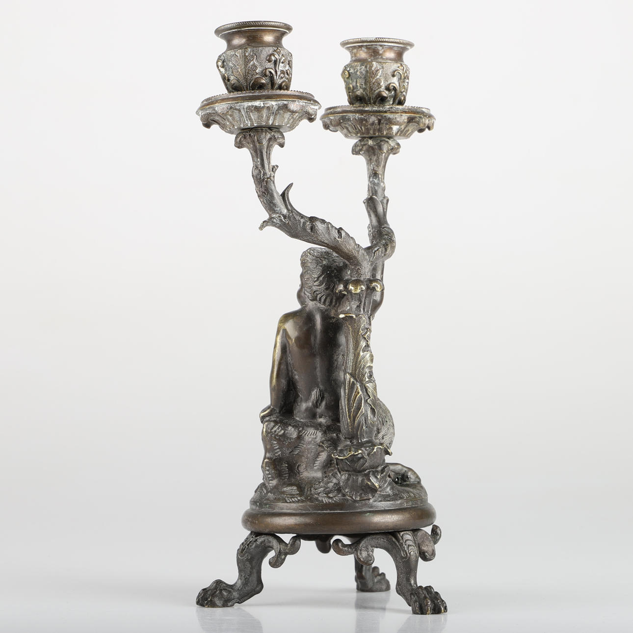 CANDELABRO, 2 brazos, sátiro en reposo, bronce.