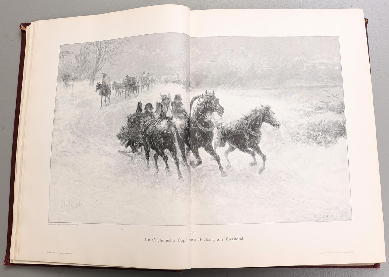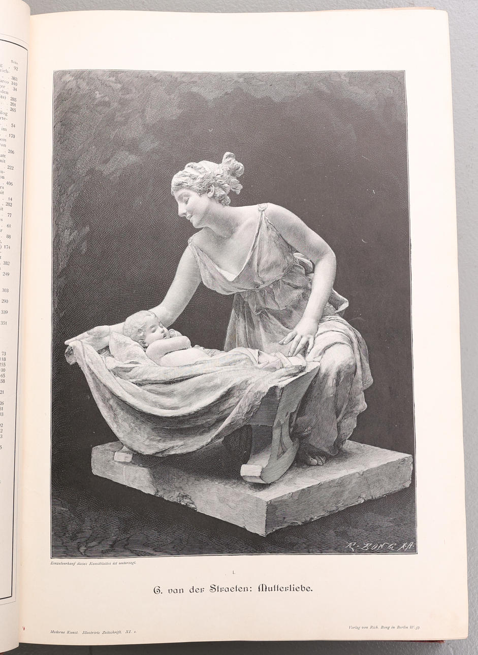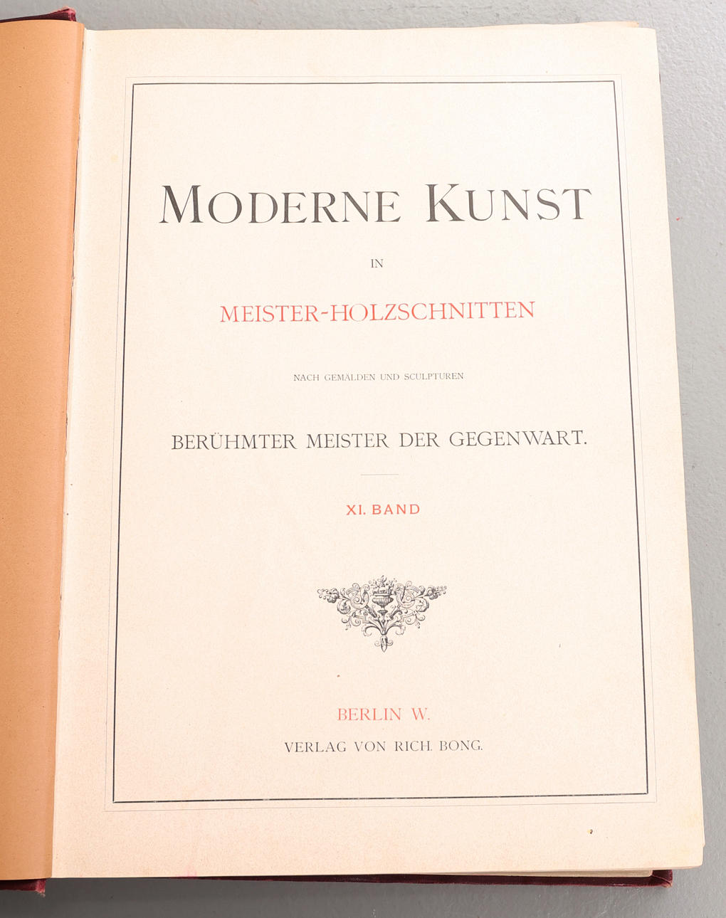 Moderne Kunst in Meister-Holzschnitten, XI Band, Berlín W. Verlag Von Rich. Bong Banda de bolas ricamente decorada, parcialmente dorada. Inserto ricamente ilustrado en blanco y negro y en color con reproducciones de obras de arte.