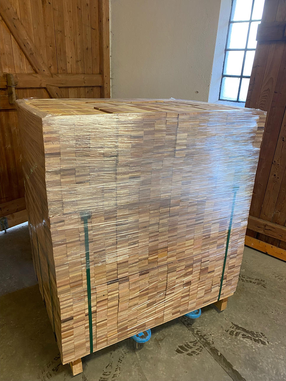 72 paquetes de caoba sin tratar de 1,80 m2 cada uno.