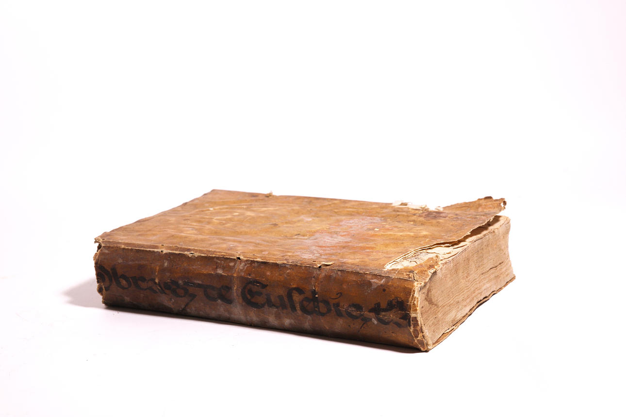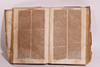 Manuscrito, probablemente siglo XVIII, con tapas en pergamino. 6x30.5x21.5 cm.